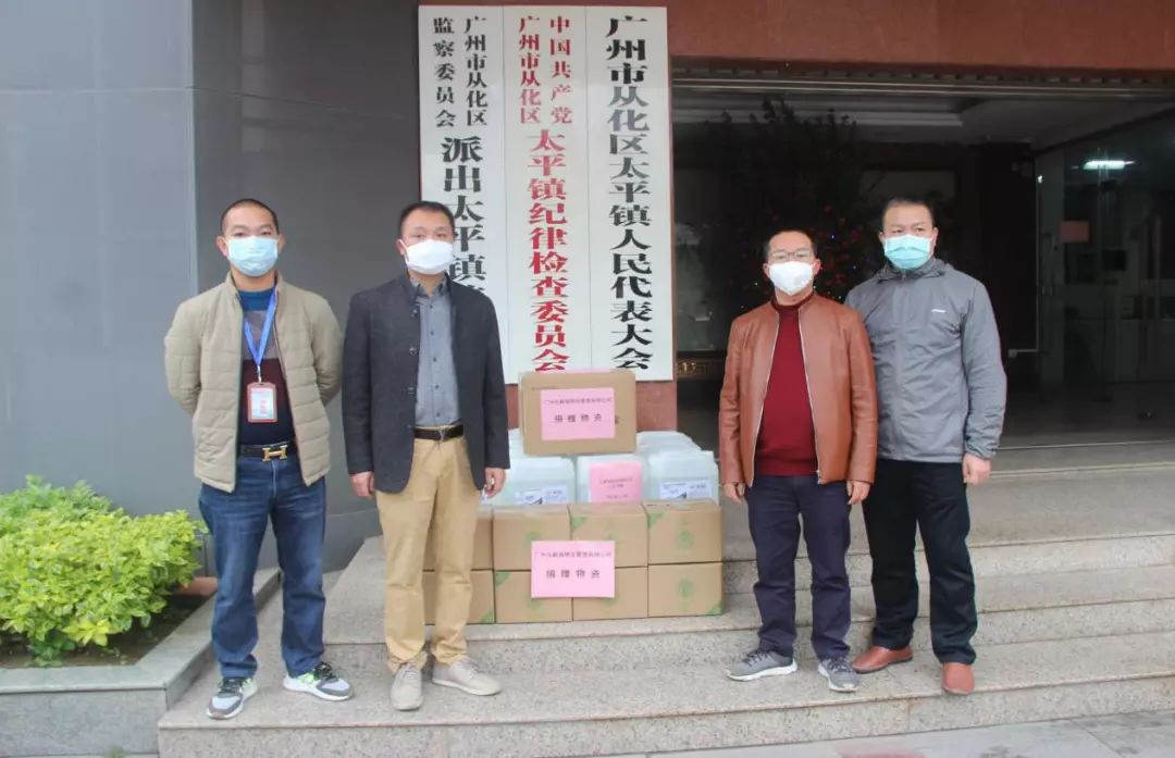 ▲2月6日,广州市从化珠江房地产开发有限公司向太平镇人民政府捐赠84消毒液50桶,并向佛岗村委捐赠囗罩5000个及消毒水一批;2月11日分别向神岗村委、水南村委捐资8000元、口罩500个用于防疫工作;2月13日向木棉村委捐资5000元用于疫情防控工作。