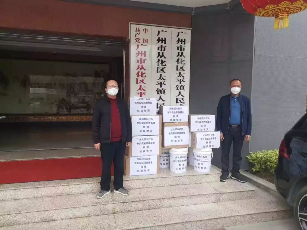 ▲2月2日,广州市从化顺兴石场有限公司向太平镇人民政府捐赠捐赠一批口罩、84消毒液、中康消毒液、双氧水等物资,价值约为50000元。2月10日向太平镇政府捐赠口罩10000只,84消毒液10桶,洗手液5箱。