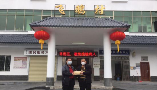 ▲2月11日,广州市亮虹贸易有限公司向飞鹅村委捐资3800元以支持村疫情防控工作。
