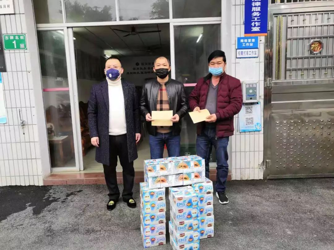 ▲2月6日,广州润粤城建咨询有限公司向银林村委捐赠口罩10000个。