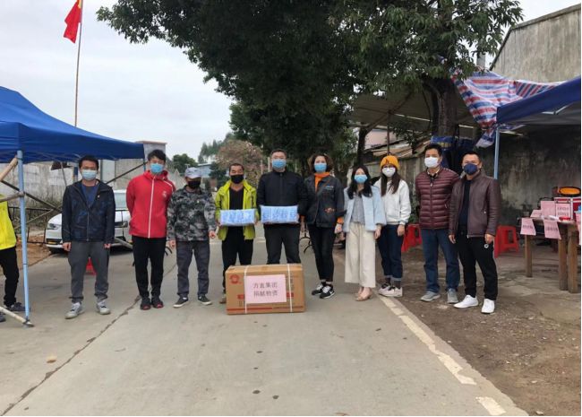 ▲广东方直投资管理集团有限公司分别向秋枫村委、飞鹅村委捐赠口罩各5000个用于防疫工作。
