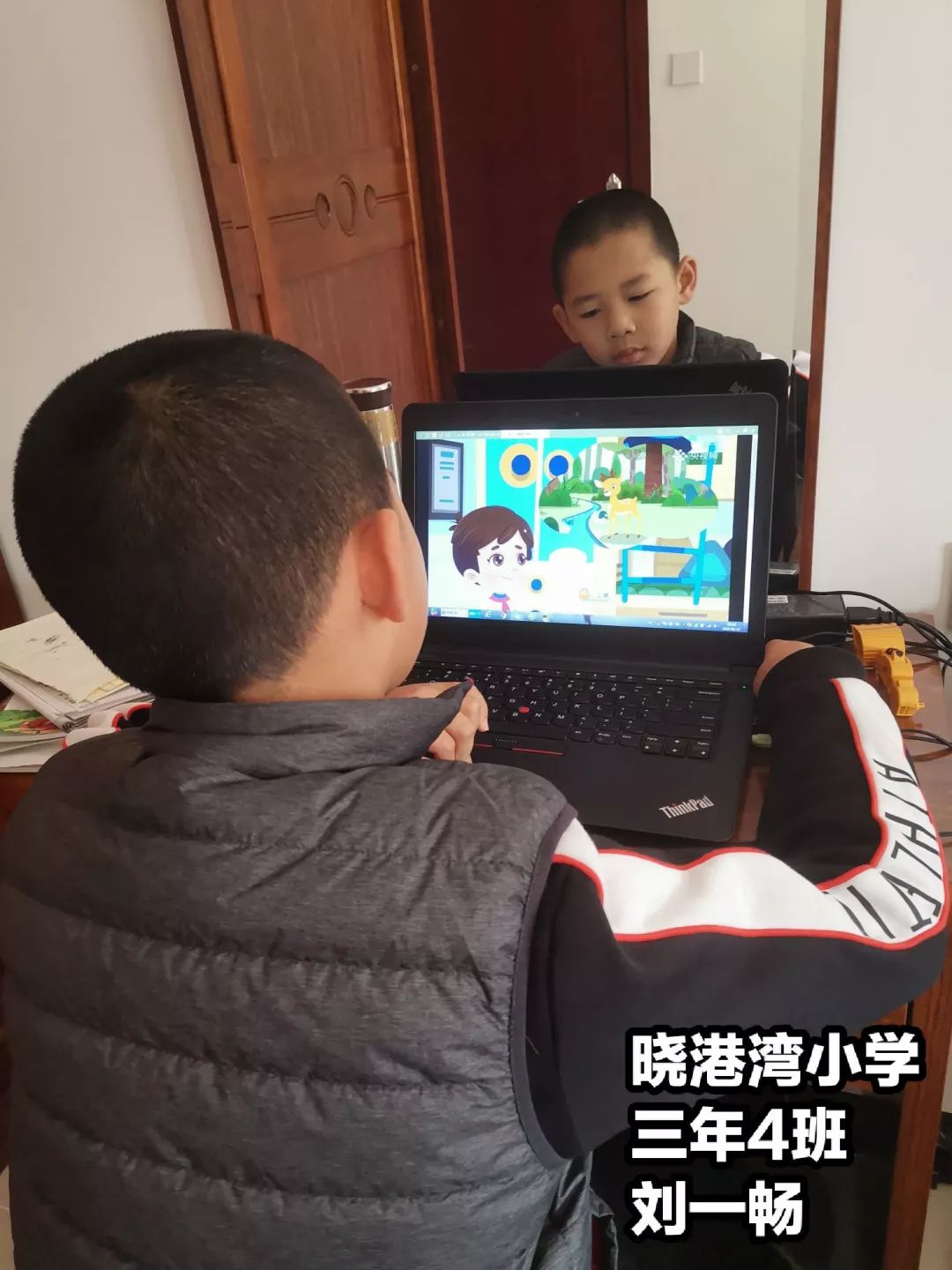 ↑晓港湾小学学生刘一畅正在观看课程视频。