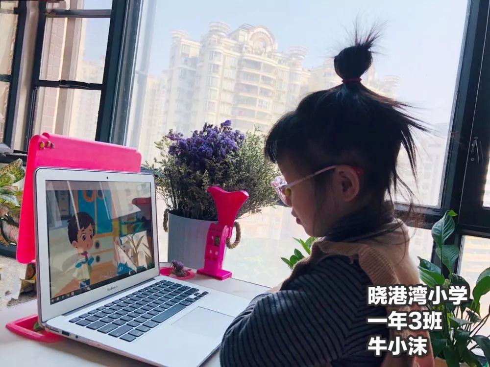 停课不停学!2月17日,广州全市初中、小学网课正式上线!孩子们早早起来,开启网上学习第一天。晓港湾小学的情况怎么样呢?一起来看看!“升国旗,奏国歌!”今天上午,晓港湾小学“云开学”,组织学生在家参加线上升旗仪式。学生们戴着红领巾,敬队礼、唱国歌,向祖国致敬,为祖国加油。