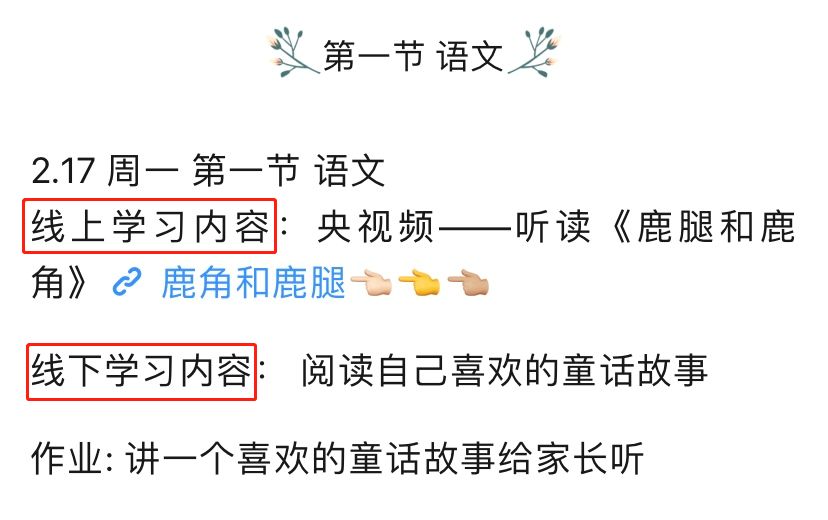 9:00-9:20上语文课,观看视频《鹿角和鹿腿》;
