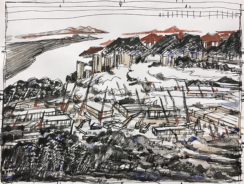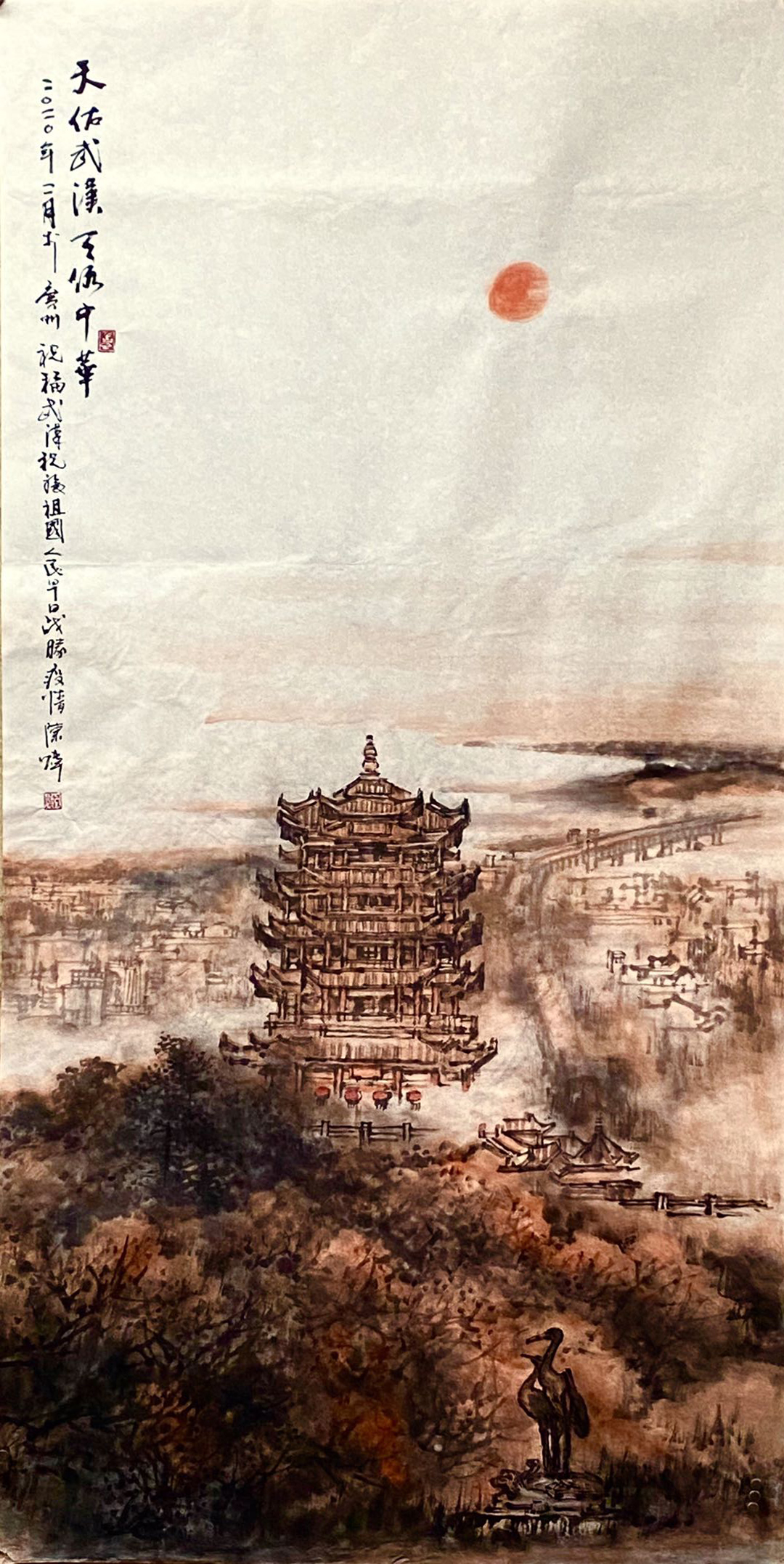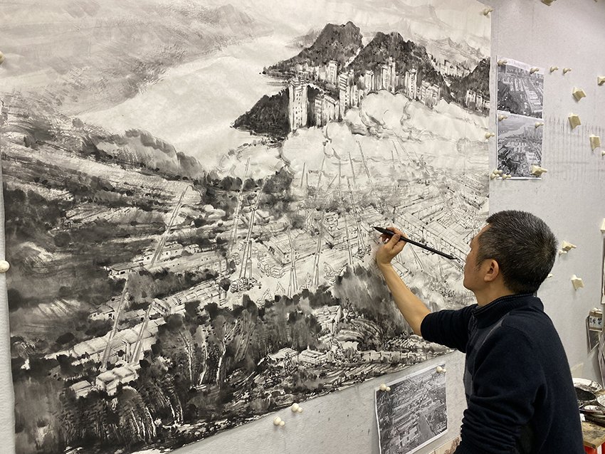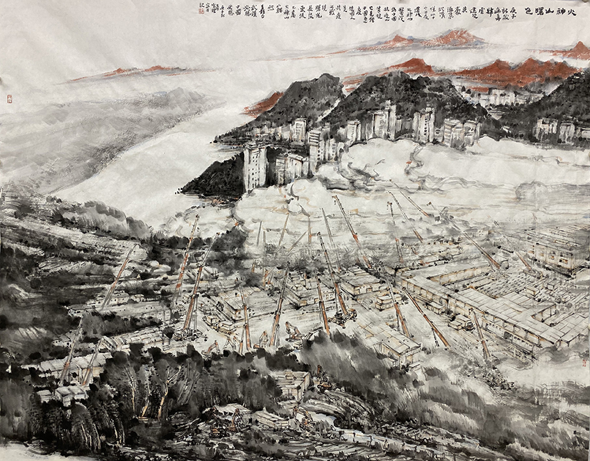 10个不眠的日子,1000余个床位,34000平方米的建筑面积,在亿万民众翘首以盼下,7000余名建设者日夜不息奋战,武汉火神山医院建成告㨗!这是民族精神与中国速度的体现。火神山医院的落成让我感到:比病毒蔓越更快的是坚强、大爱和希望。我终于确定了题材-以都市山水的方式表现火神山医院建设的壮举。