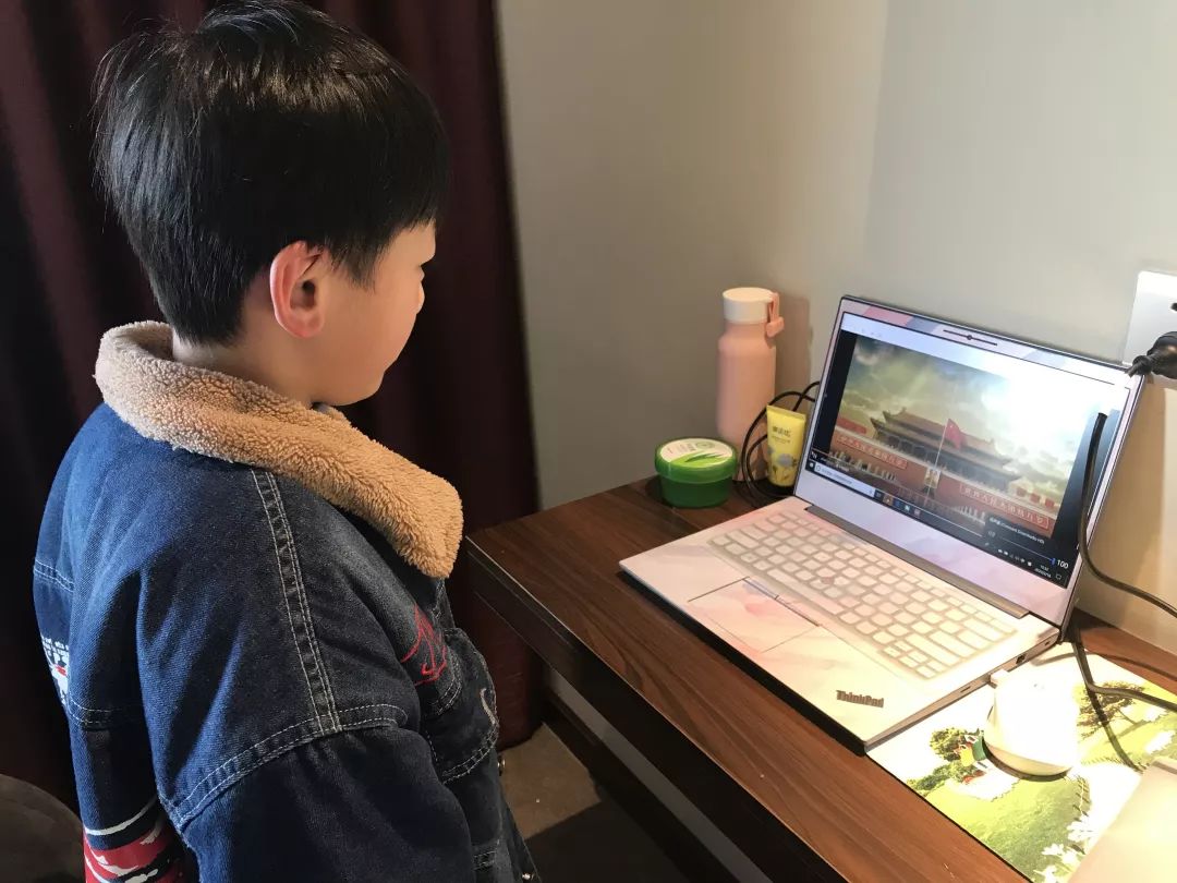 红火炬小学、东川路小学现在还在湖北的同学们也一同参加了本次升旗。他们大多是随父母回老家过年,受到疫情影响滞留至今。隔离病毒不隔爱,通过这次升旗仪式,他们仿佛又和老师、同学们聚到了一起,有开心、有感动,纷纷写下自己参加升旗仪式的感受。