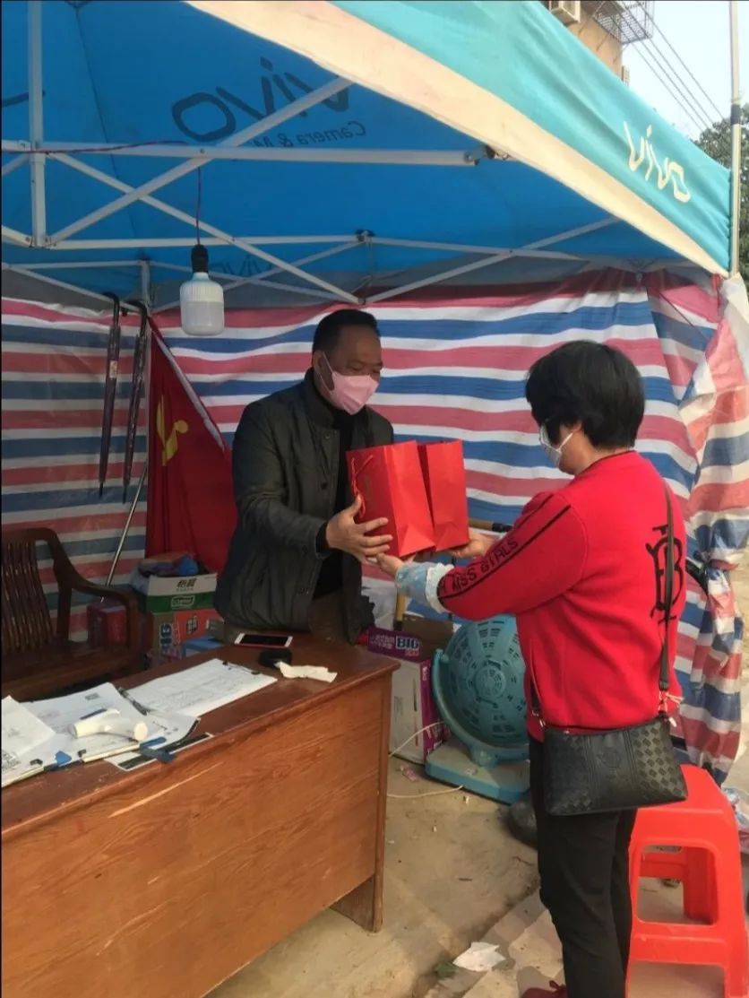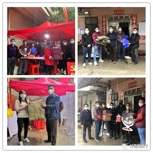 何棠下村干部冒着大雨到村内各个防控疫情岗,为岗亭第一线工作人员送上电暖炉、棉衣、防寒手套、雨衣、口罩、方便面等物资,并叮嘱大家要做好防控的检查工作。