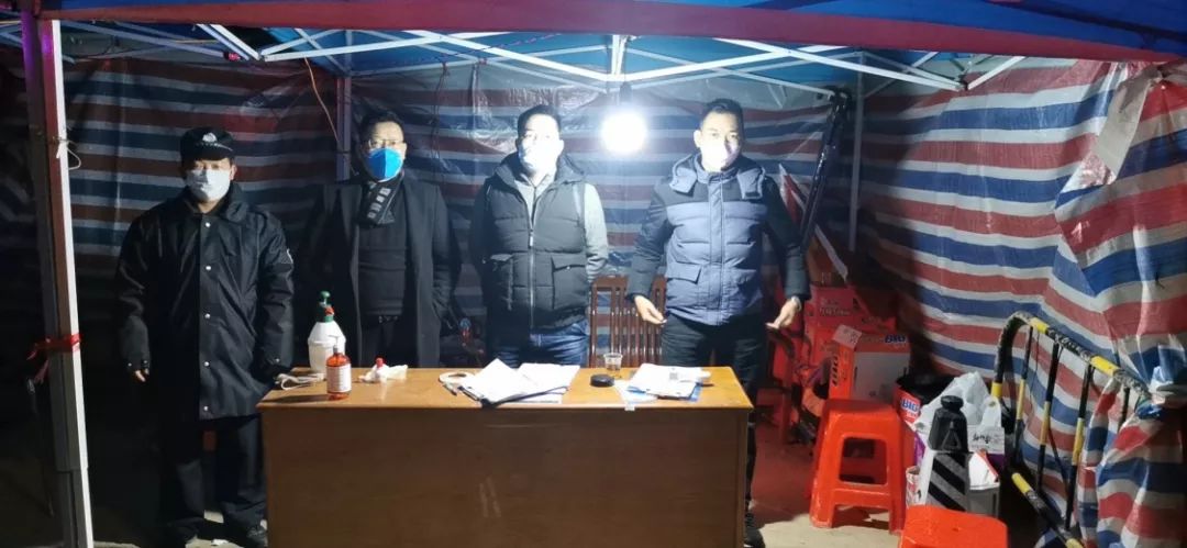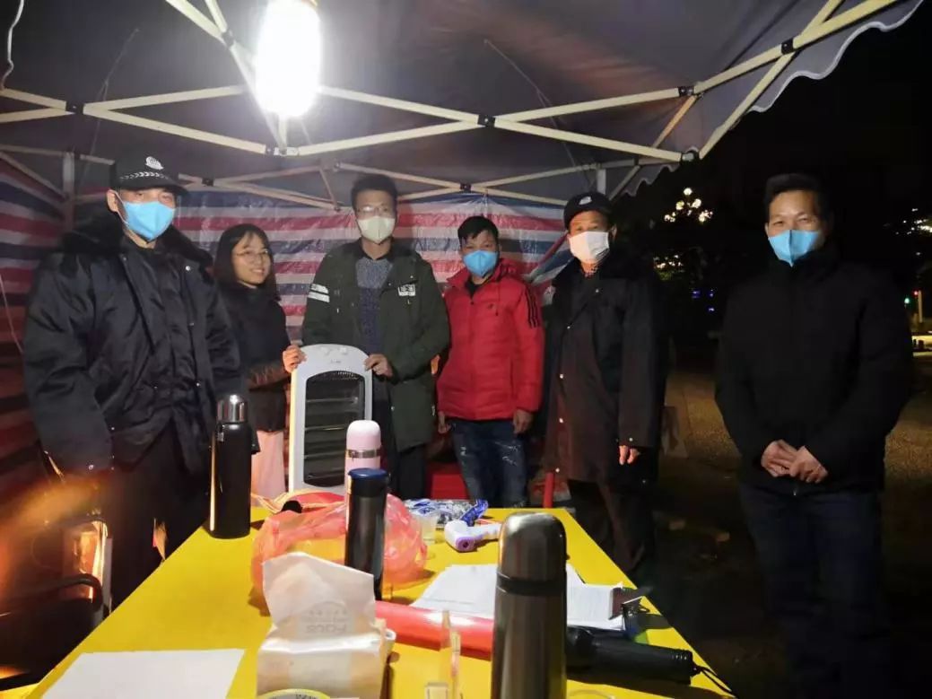 冷风中,暴雨夜,何棠下村党委班子主要领导坚守岗位,与执勤人员肩并肩,共抗疫。