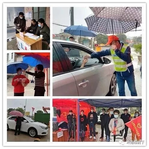 何棠下村防控疫情一线的“战士们”穿着雨衣、撑着伞、戴着口罩,披着棉袄,顶着风冒着雨,坚守在各个防疫卡点,恪尽职守。