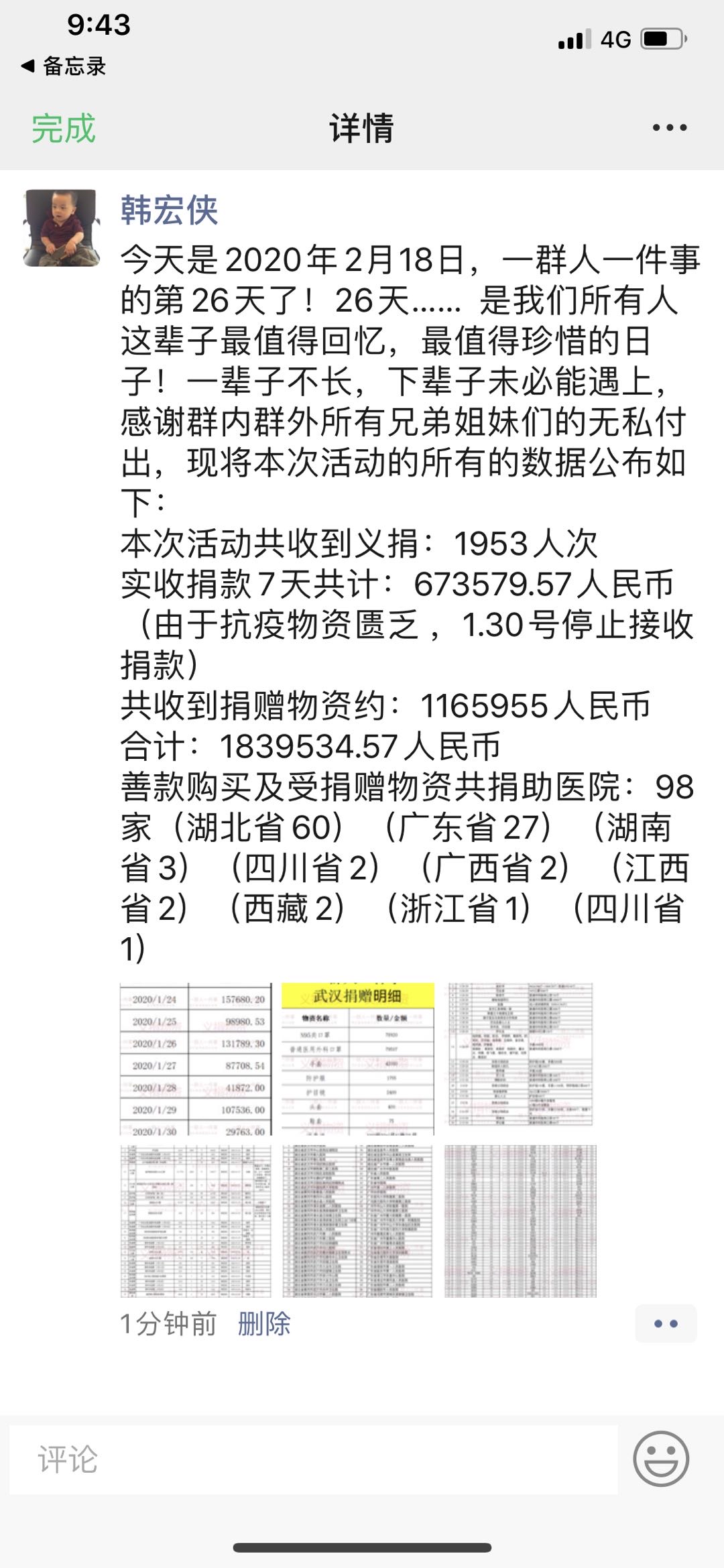 尽管后来旅行团陆续开始暂停,有的导游处于“无工开”,但是大家都没有考虑再多,“同舟共济的想法,推动着我们要去支援疫区。”韩宏侠说,整个义捐持续时间不长,由于旅行团暂停、抗疫物资缺乏,1月30日他们就停止了接受捐款。