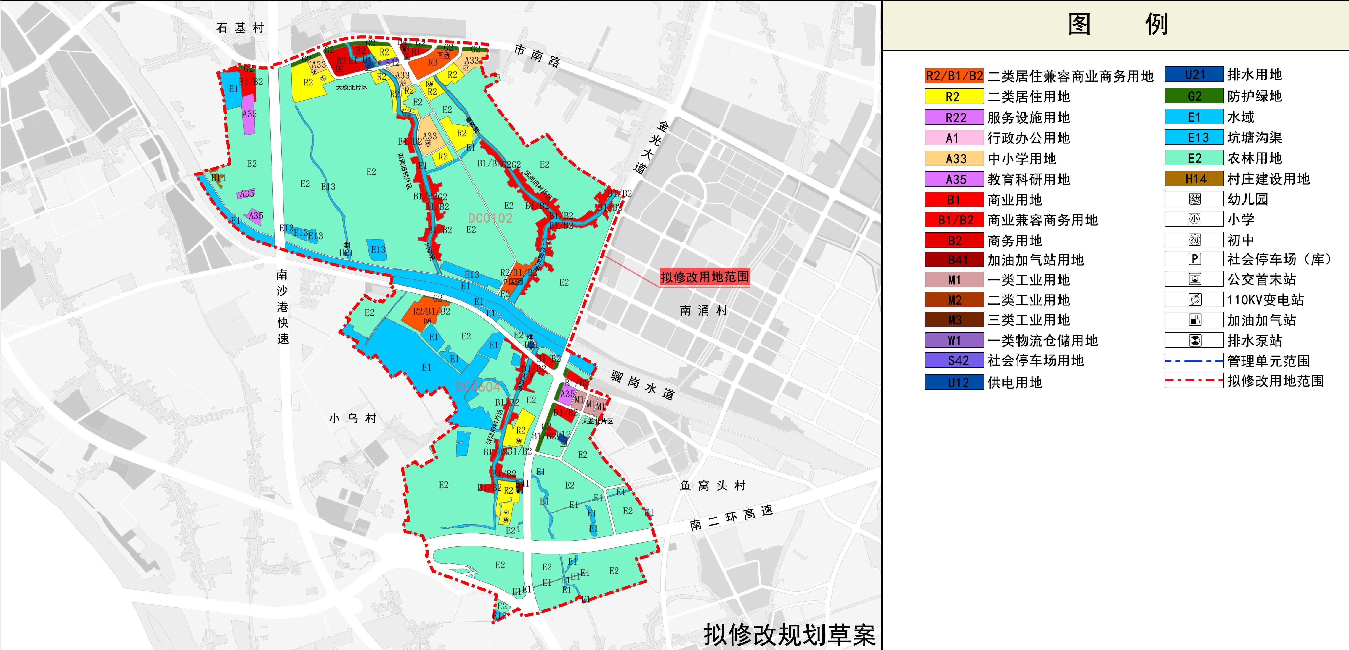 规划管理单元范围北至邻东涌社区,南邻鱼窝头社区,西邻种业小镇,东邻庆盛枢纽片区,总用地面积8.39平方公里。控规调整(大稳村、天益村)为DC0101、DC0102和DC0604共3个管理单元。管理单元用地面积15.64平方公里。