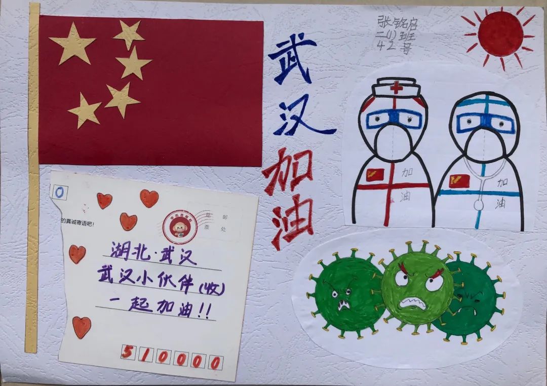 此前,南国学校结合防疫、抗疫主题分别制定了小学部、初中部德育活动方案,向同学们征集了视频、摄影、手抄报、绘画作品、书法、手工作品、标语、文章等丰富类型的作品,同学们积极响应创作。