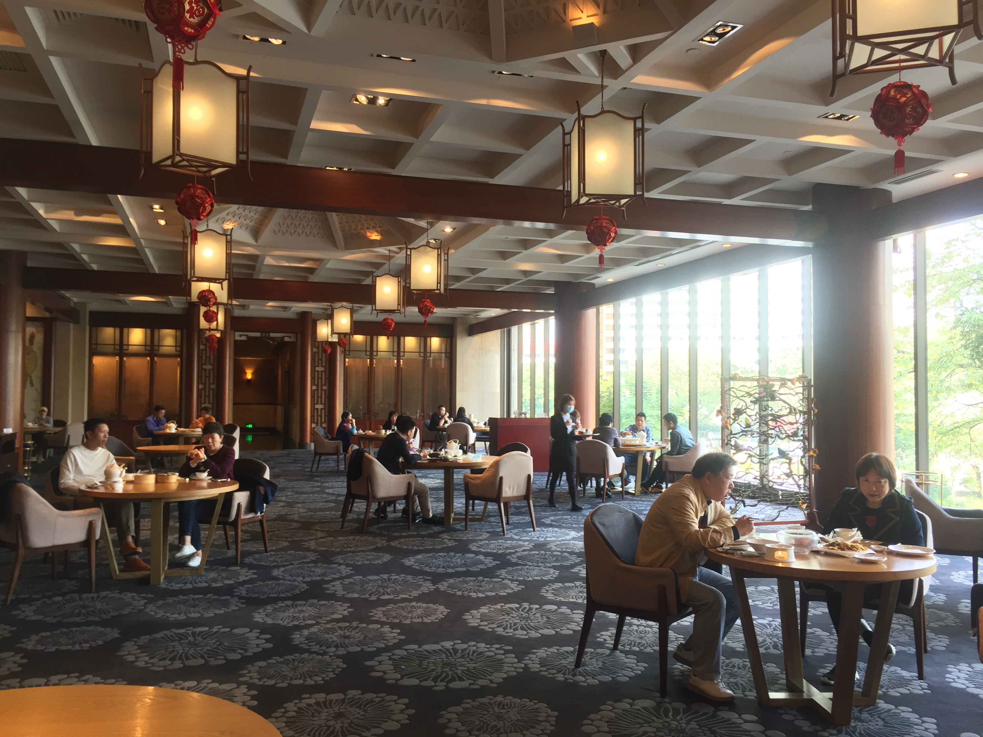 一位从天河过来就餐的谭小姐表示,今天早上了解到越秀区的餐厅可以开放堂食,再电话确认过以后就和家人到桃园馆喝茶。谭小姐说,自驾车进车库、进酒店大堂和进中餐厅都有测体温,对花园酒店的安全措施比较放心。
