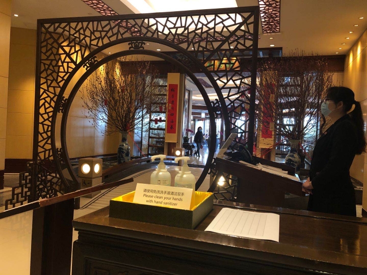 市场营销总监Fion告诉记者,广州花园酒店内有多家餐厅,但目前开放堂食服务的只有中餐厅桃园馆。其余餐厅正在安排进行卫生清洁与消毒工作,预计明后天就能恢复堂食。 花园酒店的包房用餐从昨日已开放。据经理介绍,昨日中午并未出现食客拥挤等候的现象。但8个包房都有食客用餐,客流稳定。