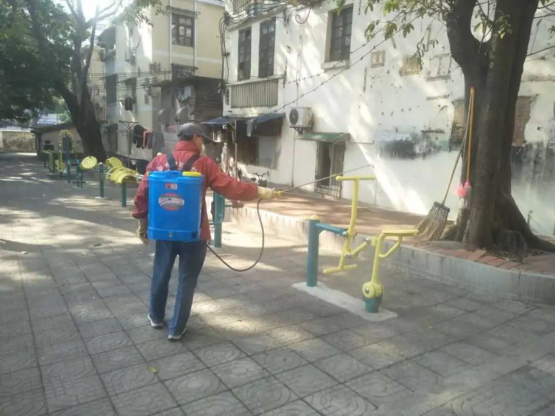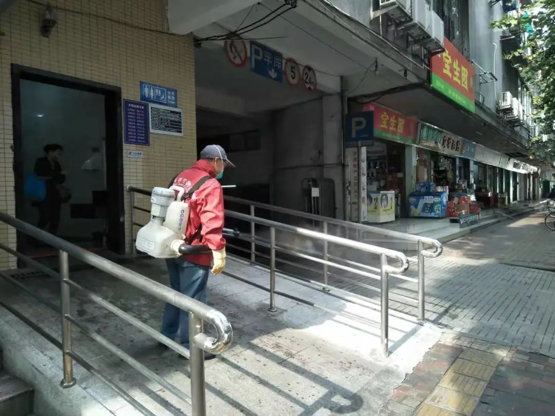 除了疫点之外,其他小区的消杀工作也没有松懈。对于有物管的小区,消毒站会敦促物业做好消毒工作;而对于无物管小区,消毒站负责每天对门禁、密码锁和电梯等部位进行消毒。广场和公园的公共健身器材和娱乐设施,也是消毒站的工作重点。