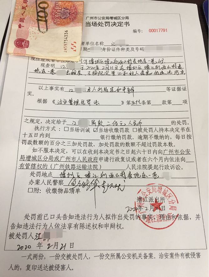 2月21日,增江街西山村一房东江某因不按规定登记承租人信息,被增江街派出所处以罚款200元的行政处罚