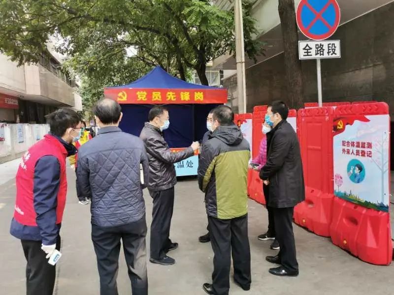 区长苏佩、区委副书记李世通、常委温志文、常委官振坤到洪桥街德源里社区督导社区防疫工作,检查严格小区管控、门岗测温运作等相关情况。
