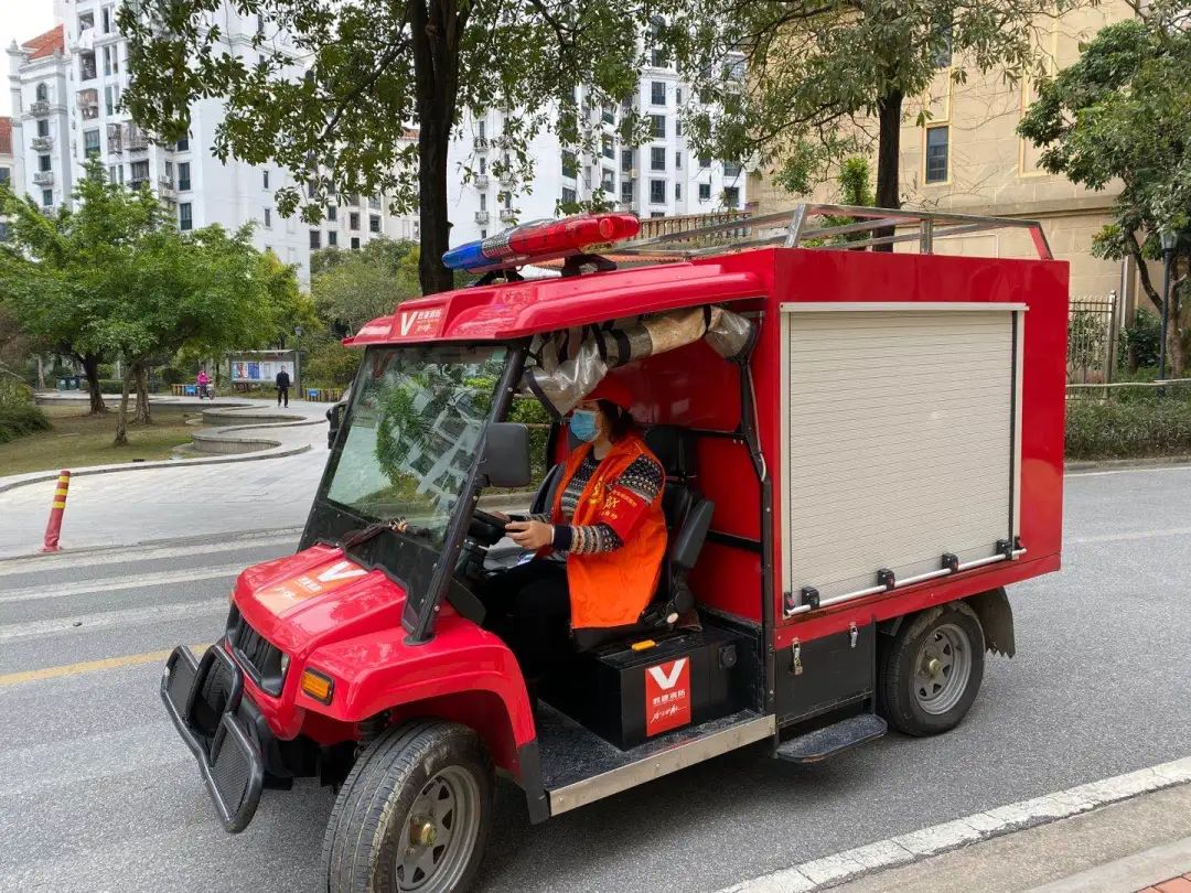 于是,连姐就在社区的微型消防车装上大喇叭,贴上宣传标语,经过简单的改造后让微型消防车立刻变身为流动的疫情防控宣传车。