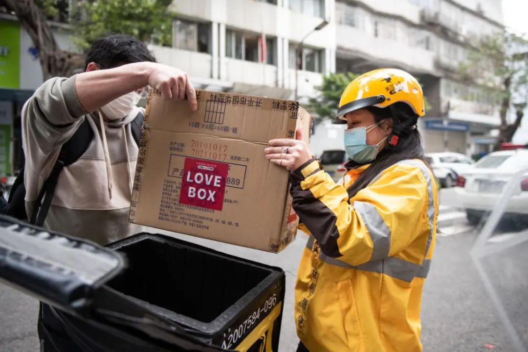 2月20日日中午,一批身穿黄色工作服的美团外卖骑手,拿着一个个写着“Love Box(爱心盒子)”的快餐盒交到了北京街值班点的社区工作人员和志愿者手上。