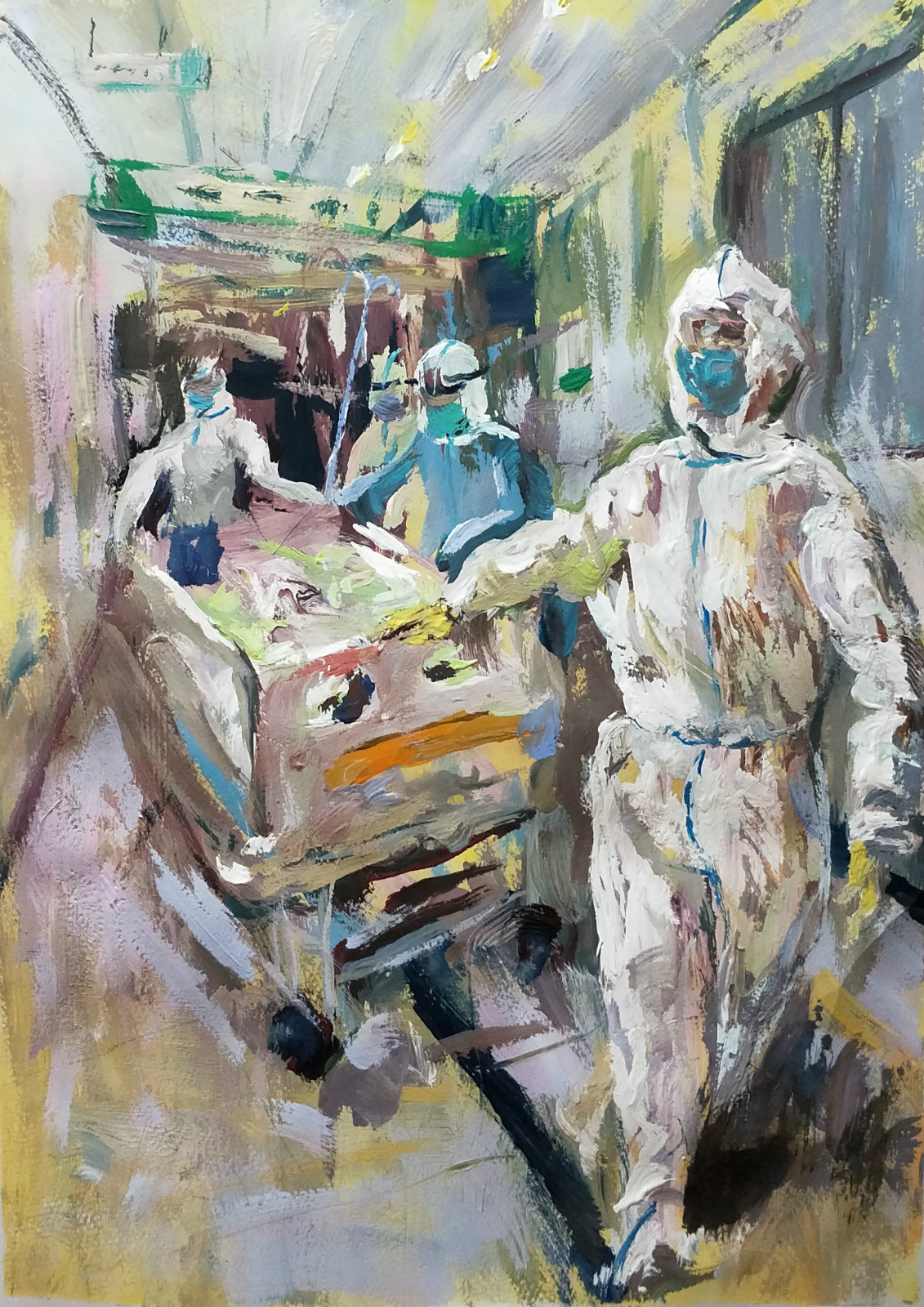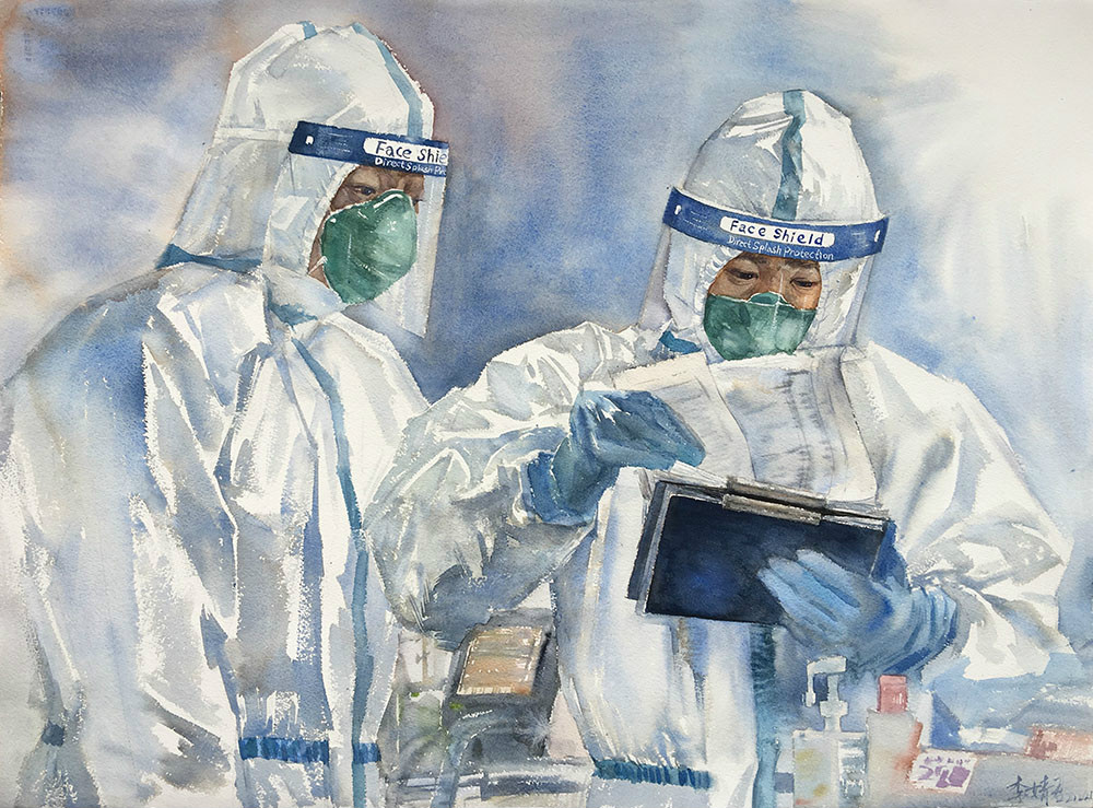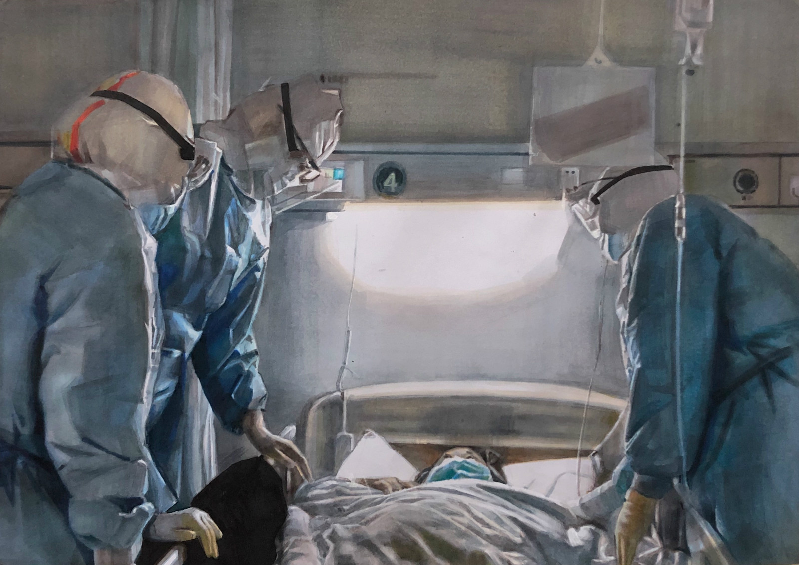 据广东省青年美术家协会主席钟瑞军介绍,自征稿以来,协会共收到1532件作品,涵盖了国画、油画、水彩、漫画、书法等门类。题材多样,或宏大,或细腻;风格各异,或写实,或写意;有的作品可谓直抒胸臆,有的则委婉含蓄……其中有些医护人员的脸部油画特写,让人看过后感觉就像一位出院的患者所表达的“说眼睛很亮的人,是没有看过这些护士的眼睛”,非常打动人。