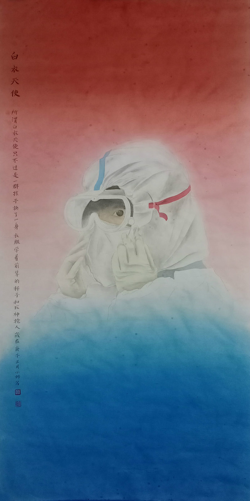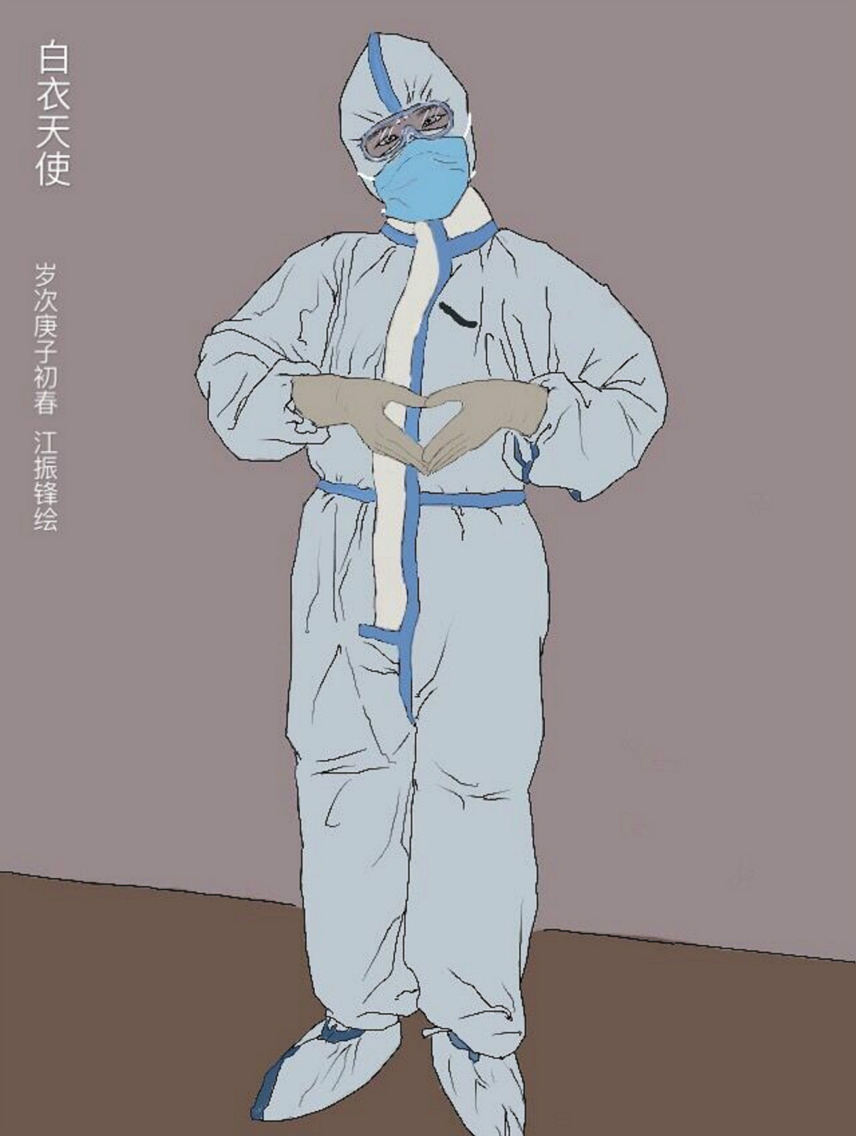 创作感言:护士和医生都是在一线战斗的勇士,也是我们的白衣天使。他们每天只能穿着防护衣在“战场”上战斗着,没有多少时间休息,您们为祖国做出巨大的贡献。感谢你们为我们的付出!