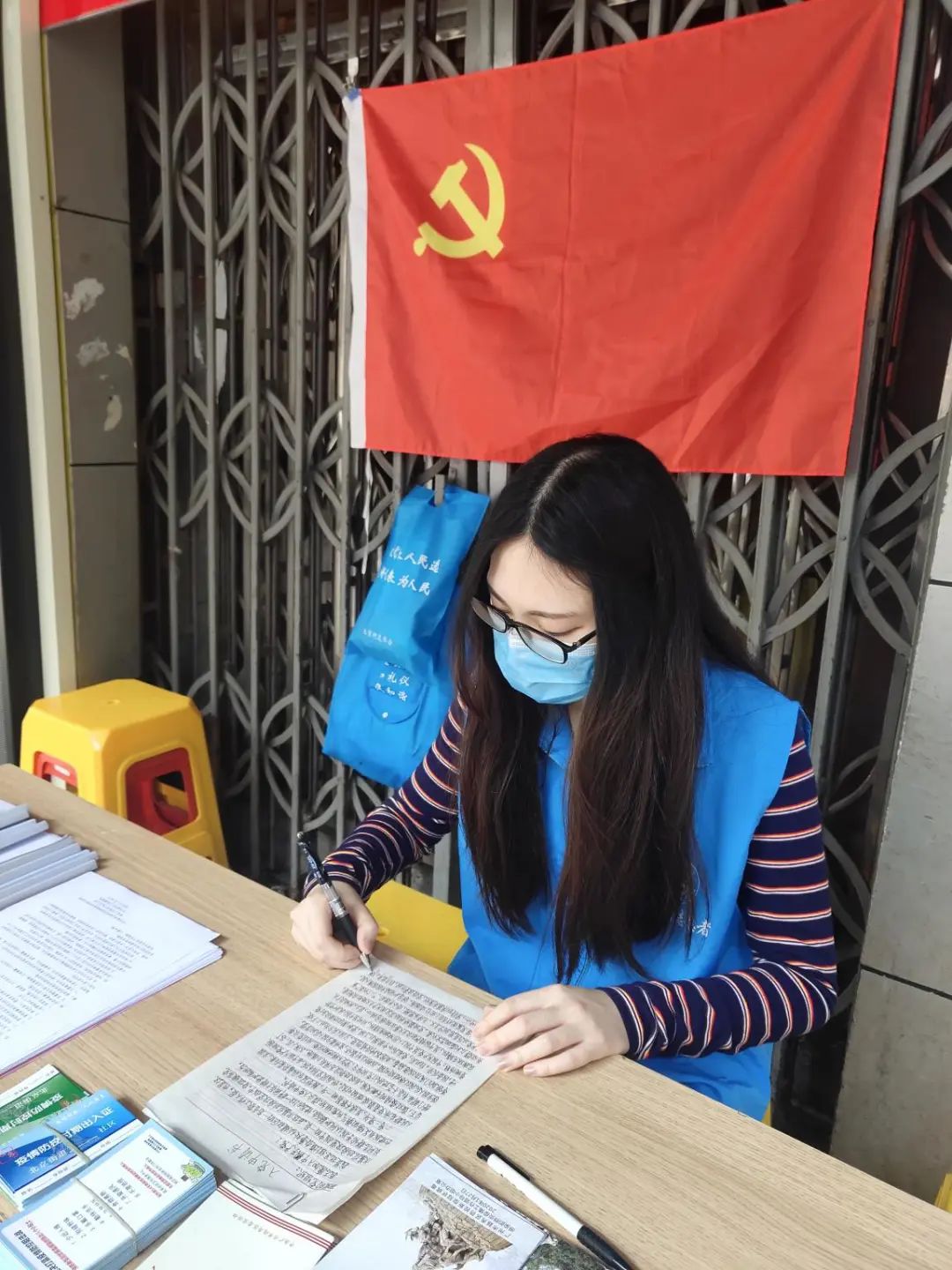 去年9月入职的何颖,是94后的年轻社区专干。虽然刚参加社区工作半年时间,但当新冠肺炎疫情阻击战打响后,她同社区工作人员深入疫情防控一线,宣传疫情防控知识、逐门逐户排查登记、三人小组上门、为居家隔离对象送物资……并郑重向党组织提出了入党申请。为了让居民了解到此次疫情的严重之处,每天她都提前15分钟以上到岗,到值守点对居民进行相关科学防疫知识的普及和劝导。每天加班加点半夜回家已然成了工作常态。她将“志之所向,无坚不入”作为座右铭,时刻坚定共产主义理想信念,以共产党员标准严格要求自己,把疫情阻击战作为砥砺自己入党初心的磨刀石,在平凡的岗位上贡献自己的光和热。