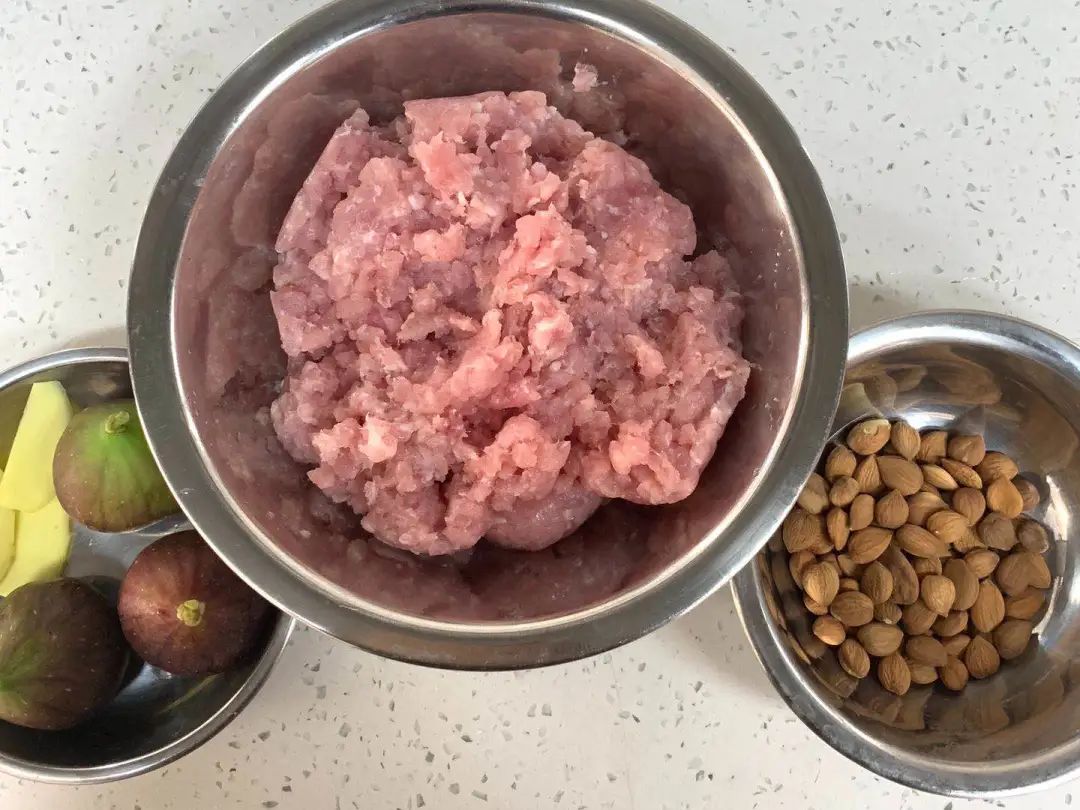 原料:瘦肉1.5斤,南北杏1两、新鲜或者干无花果4只,盐、糖、味、姜片各适量
