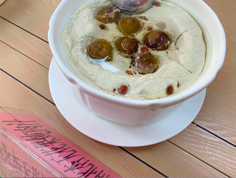 3、把南北杏、无花果放入炖盅内加盖炖4小时,拿出即可。