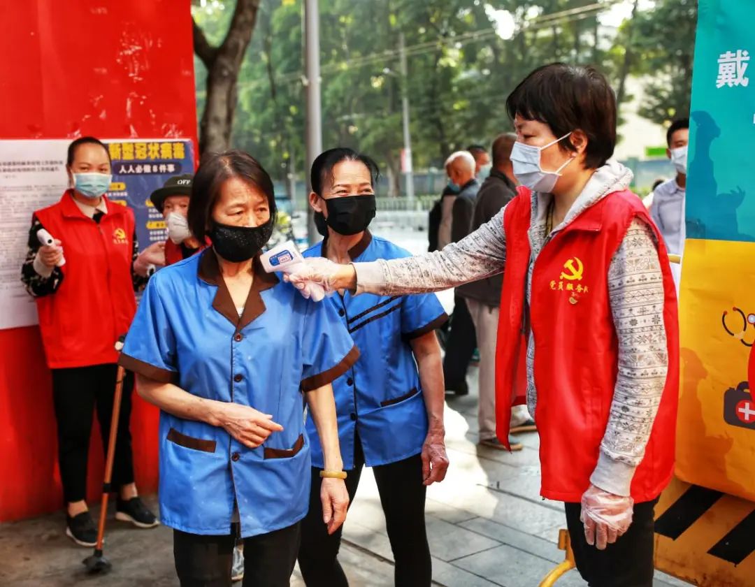 2月25日,破产法庭全体党员分成上下午两个小队,在北京街雅荷塘社区管控点协助开展测量体温、查验证件、登记体温异常人员,引导返穗人员在“穗康“小程序上登记健康信息等防控工作。