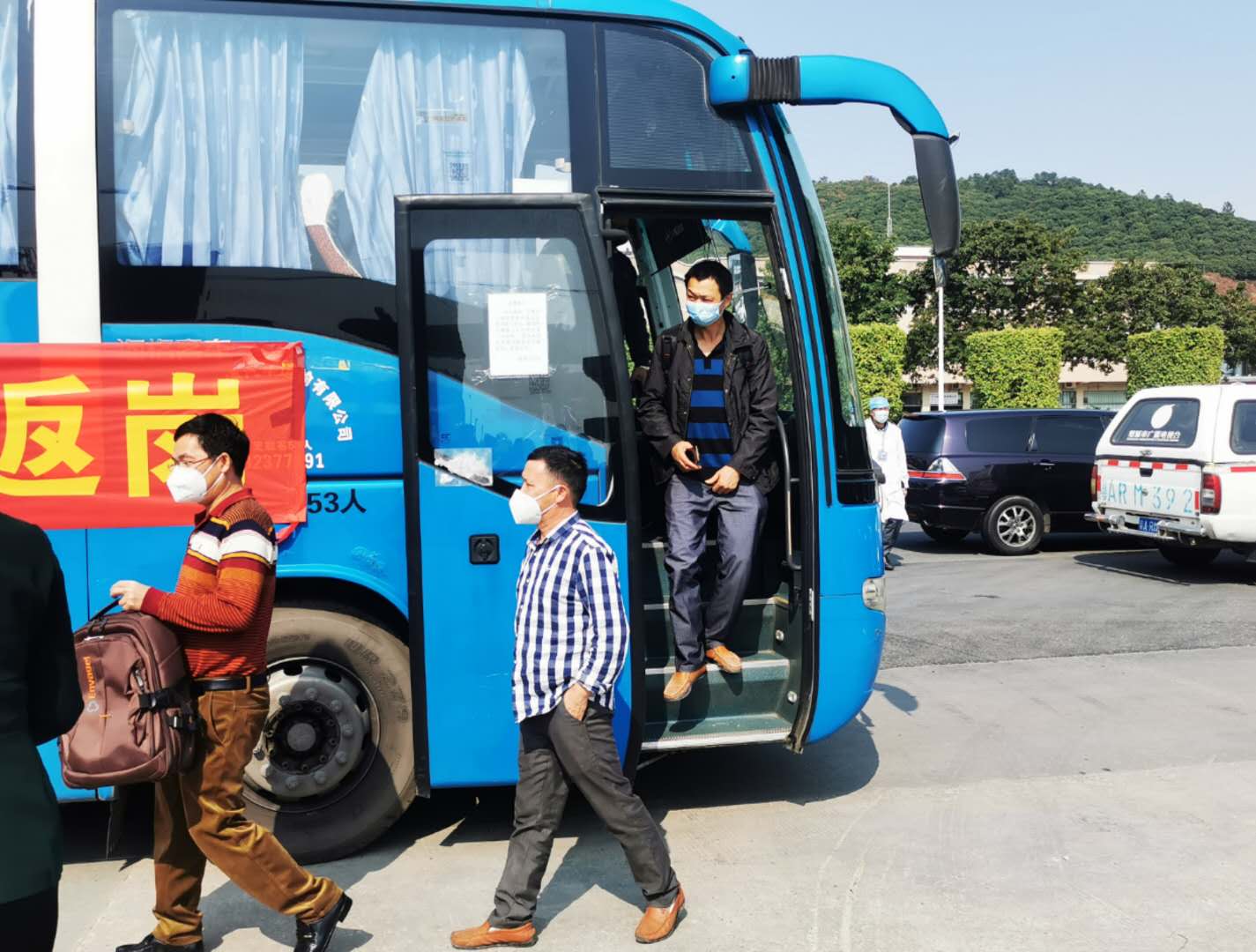 由广州市增城区人社、交通运输部门协调车辆,在定点地组织需要返回增城的务工人员,定时发车将务工人员接回增城。
