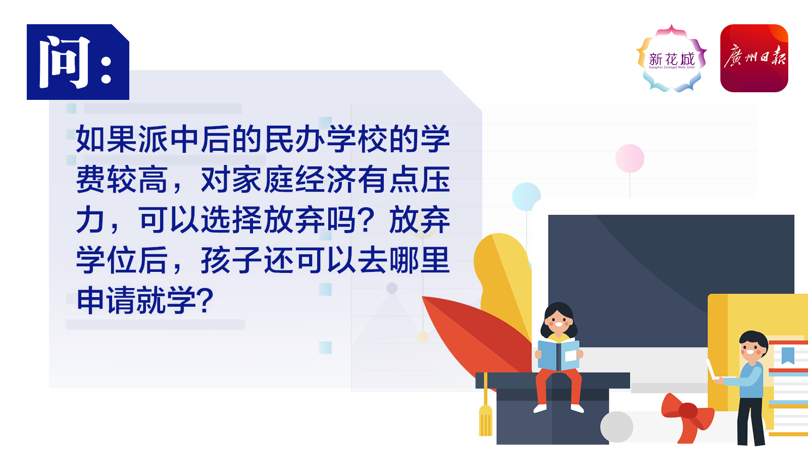 被电脑派位派中的学生,家长需要在规定时间内在网上报名系统进行确认,并按要求到拟录取学校进行注册。逾期未注册的学生,视为放弃录取资格。广州市户籍学生或符合政策性照顾条件的学生自愿放弃民办学校学位的,可以到属地区教育局申请统筹公办学位,请家长留意,统筹的学位不一定是原电脑派位或者对口直升学校的学位;不符合政策性照顾条件的非广州市户籍学生,可以按当地区指引或规定申请入学,包括积分入学,或者参加民办学校补录等。