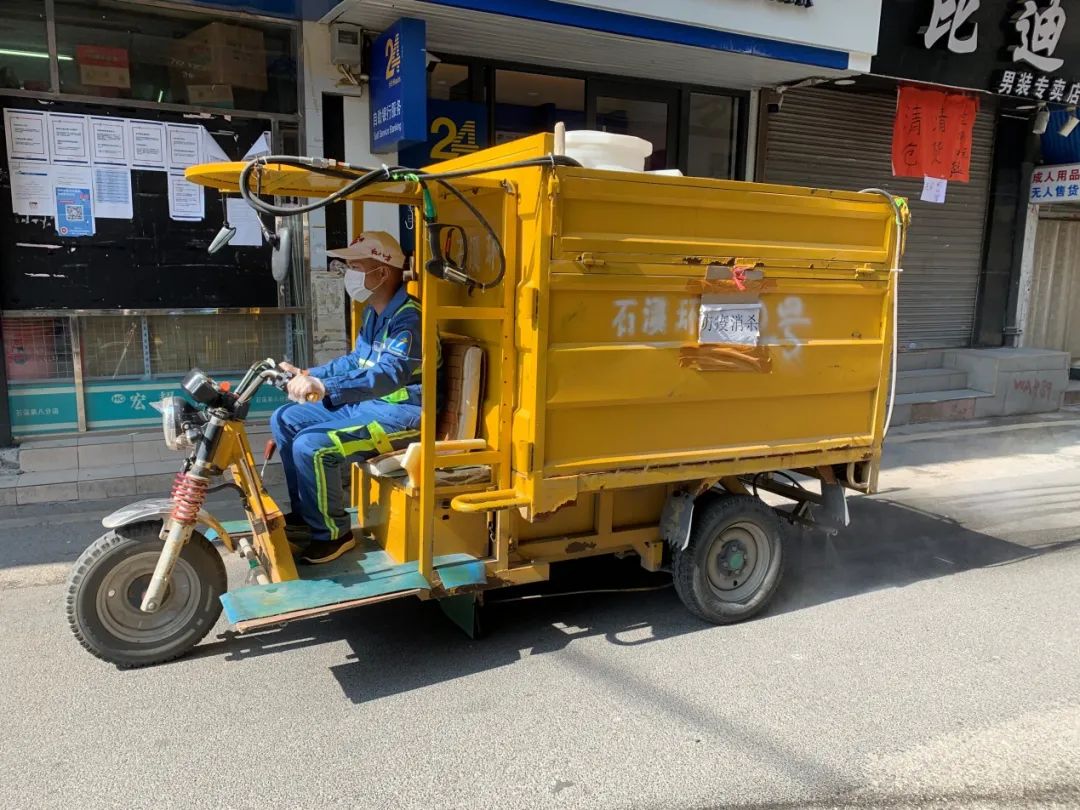 由于背街窄巷众多,村内的消毒工作也是一个难题。为此,石溪环卫队将一台洒水车进行改装,确保能进入大部分巷道进行消毒。自1月25日起,石溪环卫队每天对全村主干道、公共场所等重点区域喷洒2次消毒水,加强清洁垃圾压缩站、各类卫生死角和乱张贴,确保消毒防疫工作全方位、广覆盖、无缝隙。