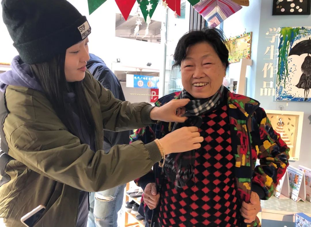 卢敏仪编织围巾,定期向社区老人免费赠送。