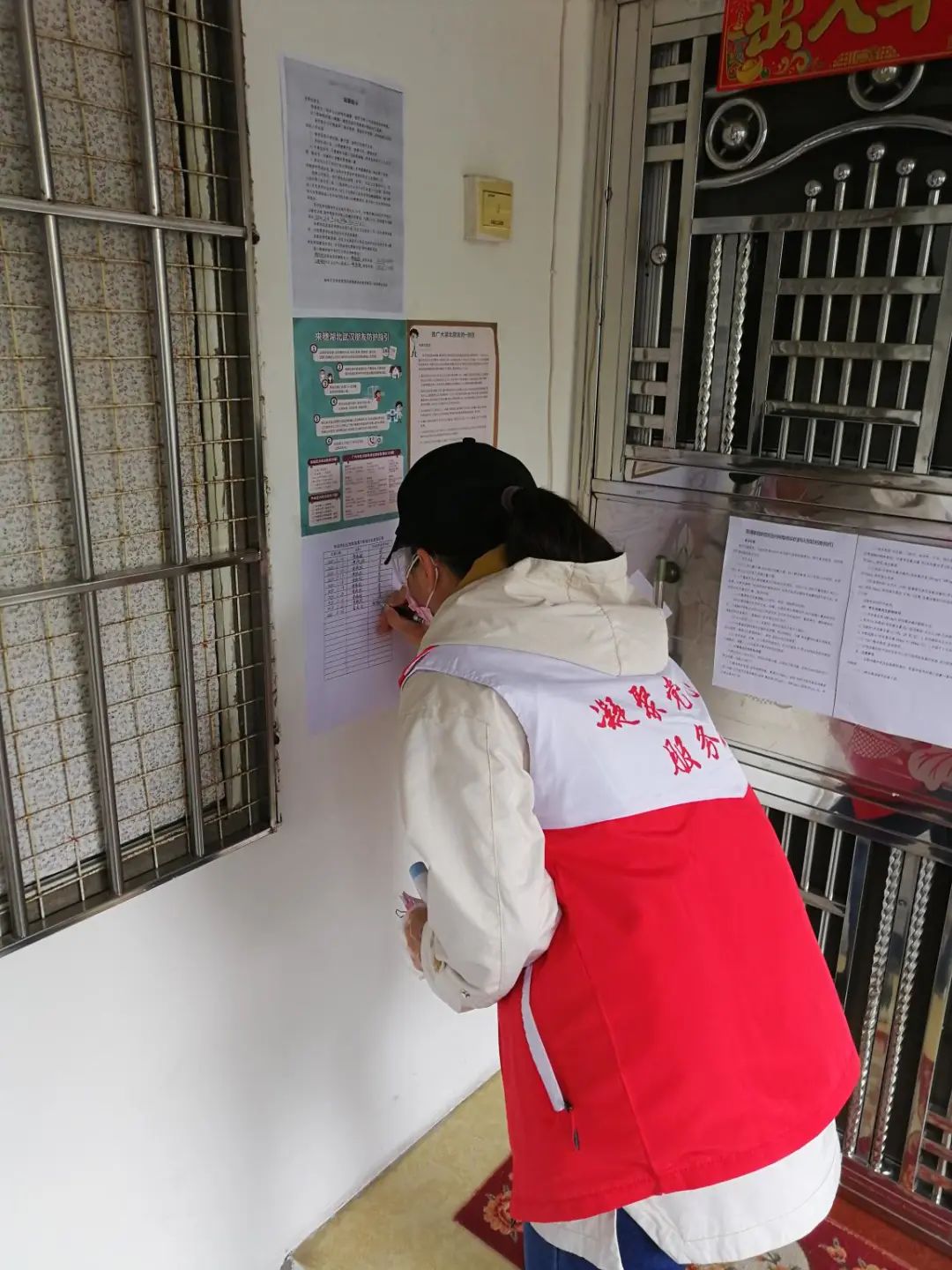 为普及居民对疫情防控的知晓率,黄俊谊带领工作人员在辖内宣传栏、大楼大院出入口、人流密集区等张贴疫情防控宣传画和相关健康资讯。