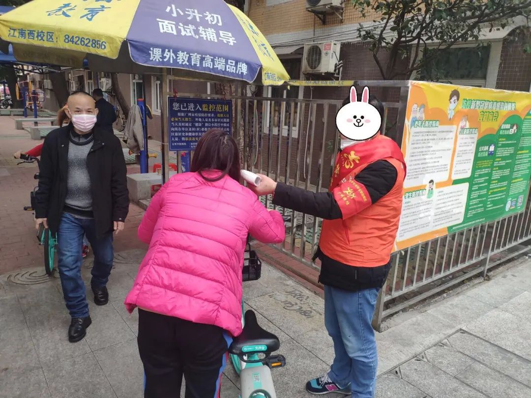 他们作为门岗值守人员为来往居民测量体温,对新返穗人员作登记,向居民宣传新冠肺炎疫情预防知识,劝导居民群众不要聚集。