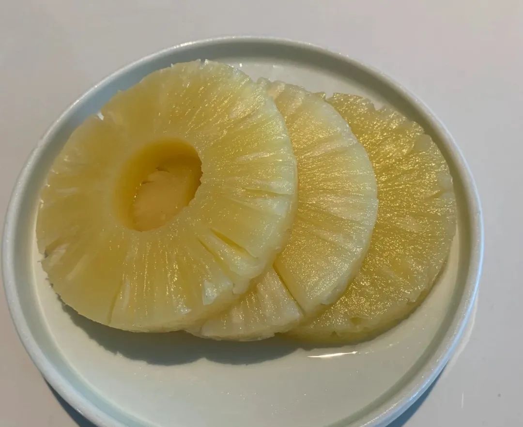 1、先将菠萝切件,用盐水稍微浸泡片刻,去掉涩味;
