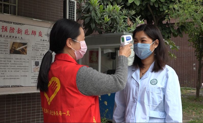 3月5日下午,在南沙区黄阁镇社区卫生服务中心门前看到,一排穿着红色马甲的“tony”老师,正在为穿着白大褂的医务人员解决“头”等大事。