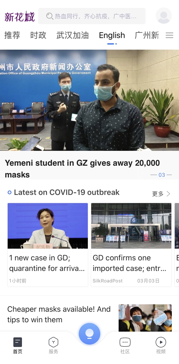 目前,在疫情防控的关键阶段,发布与疫情防控有关的英语资讯,为在穗外国友人提供安全防护建议,是刚刚上线的新花城英文频道的工作重心。