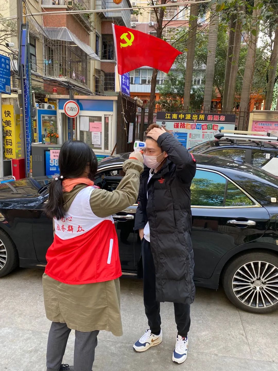 穿好红马甲,戴上红袖章,举起测温枪,“您好,请您将口罩戴好。”“您好,测下温,您的体温是36度。”一天下来,青凤社区的党员突击队队员屈明、郭奕瑚平均要为居民群众测体温400多次,但依然一丝不苟,没有一点懈怠。