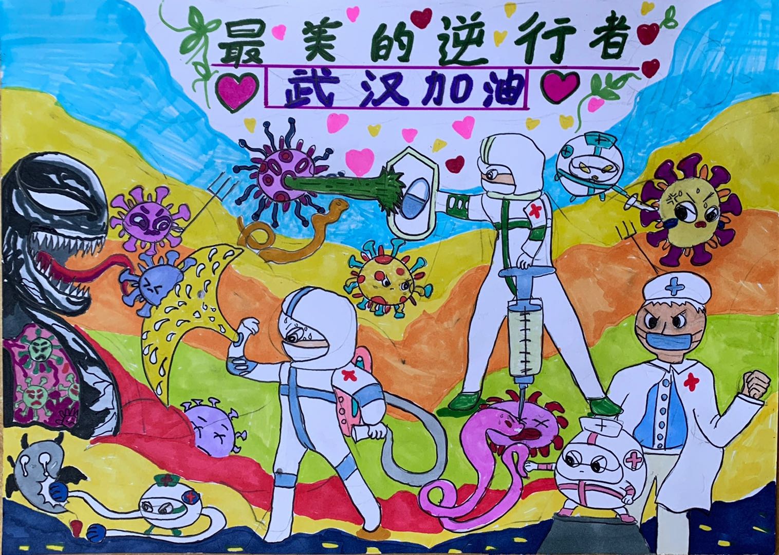 除了张东翔的视频,还有学生运用绘画、手抄报、书信等各种形式,搜集整理了抗疫过程中真实而温暖的英雄故事。