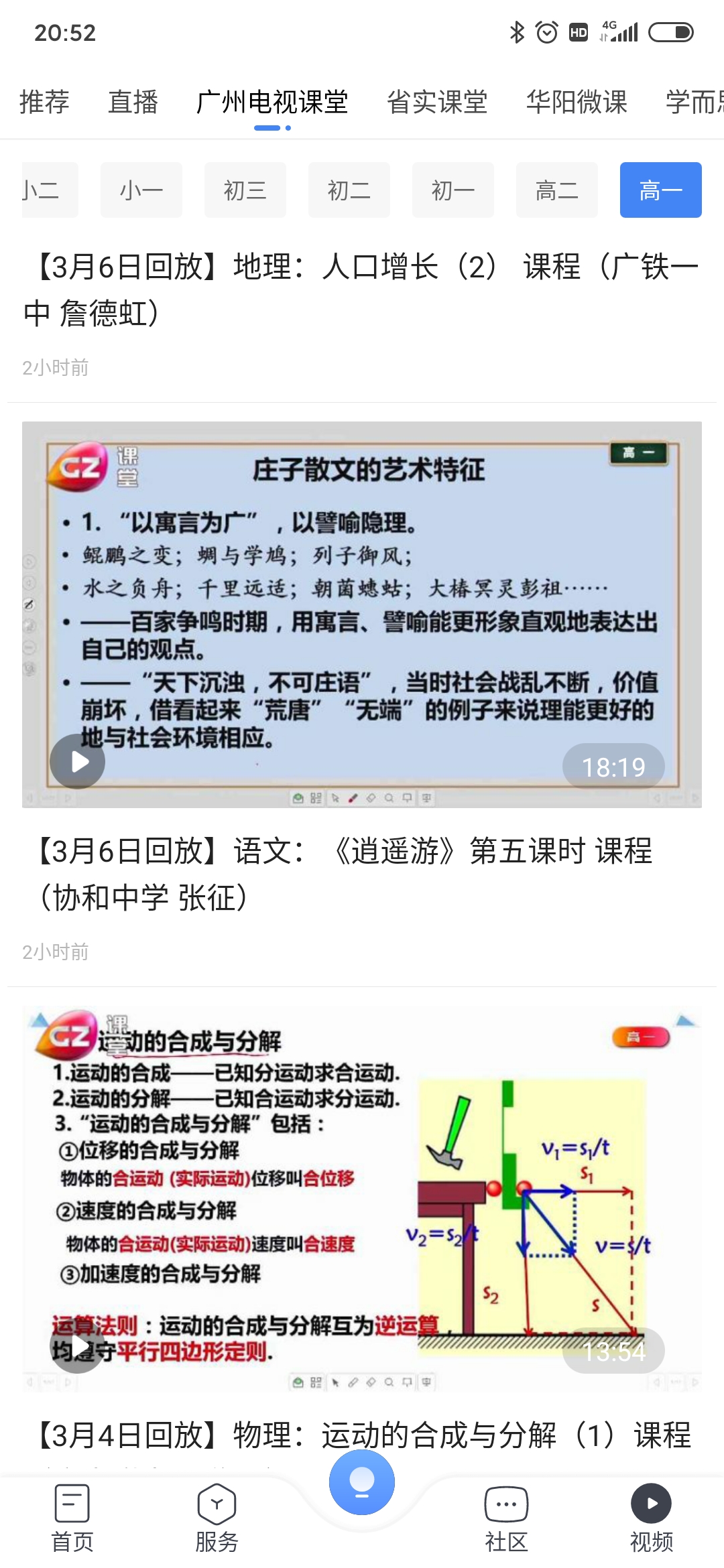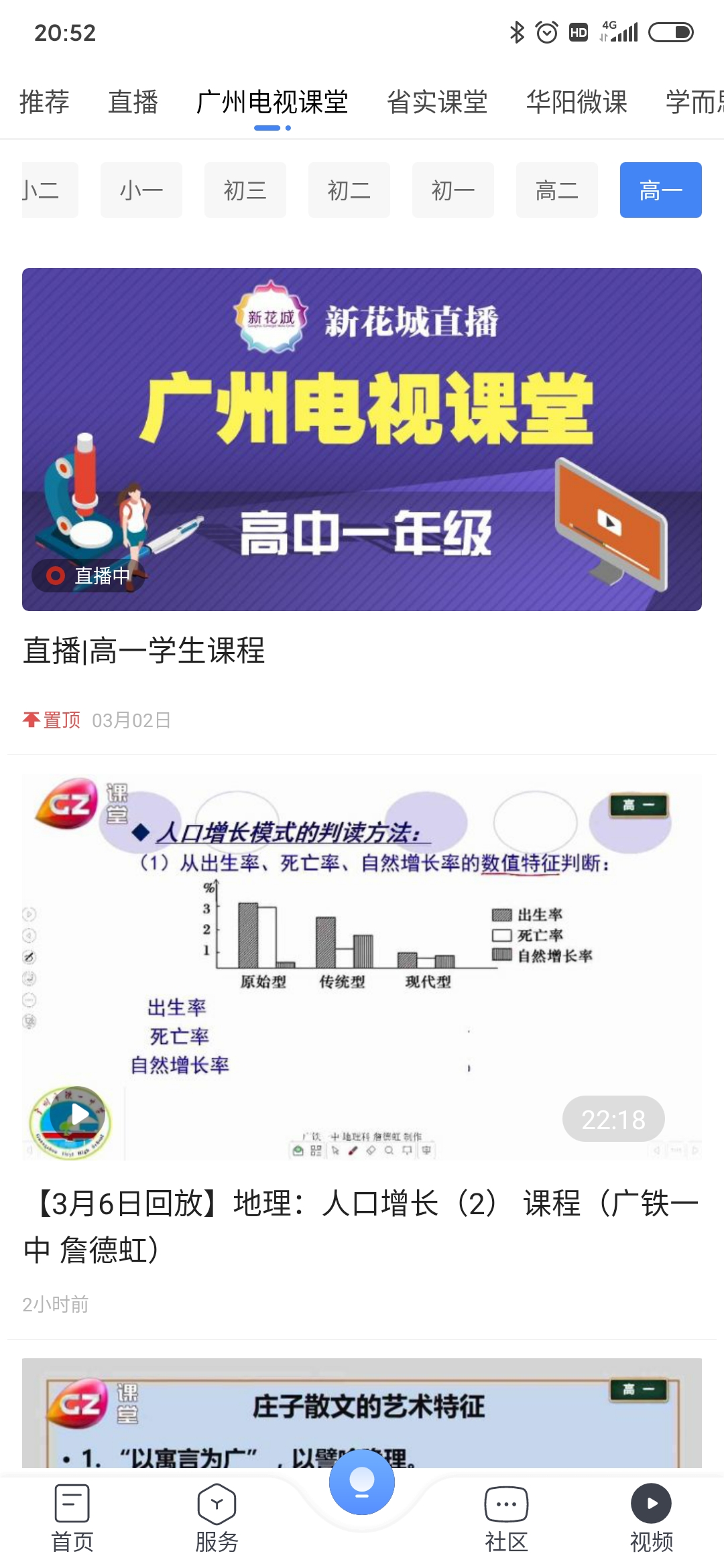 ★学生家长可下载安装新花城APP,点击栏目下方“视频”——广州电视课堂,即可进行观看;