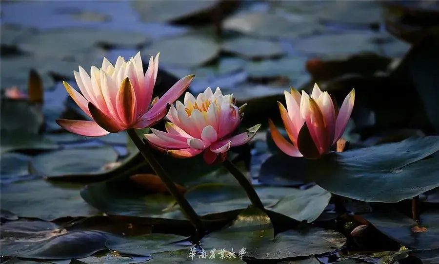 睡莲是一种多年生浮叶型水生草本植物,根状茎肥厚,直立或匍匐。可分为耐寒、不耐寒两大类,自古被奉为圣洁、美丽的化身。苏醒于白昼,悄眠于月色。华农校园内的睡莲主要分布在湿地公园的鄱阳湖。