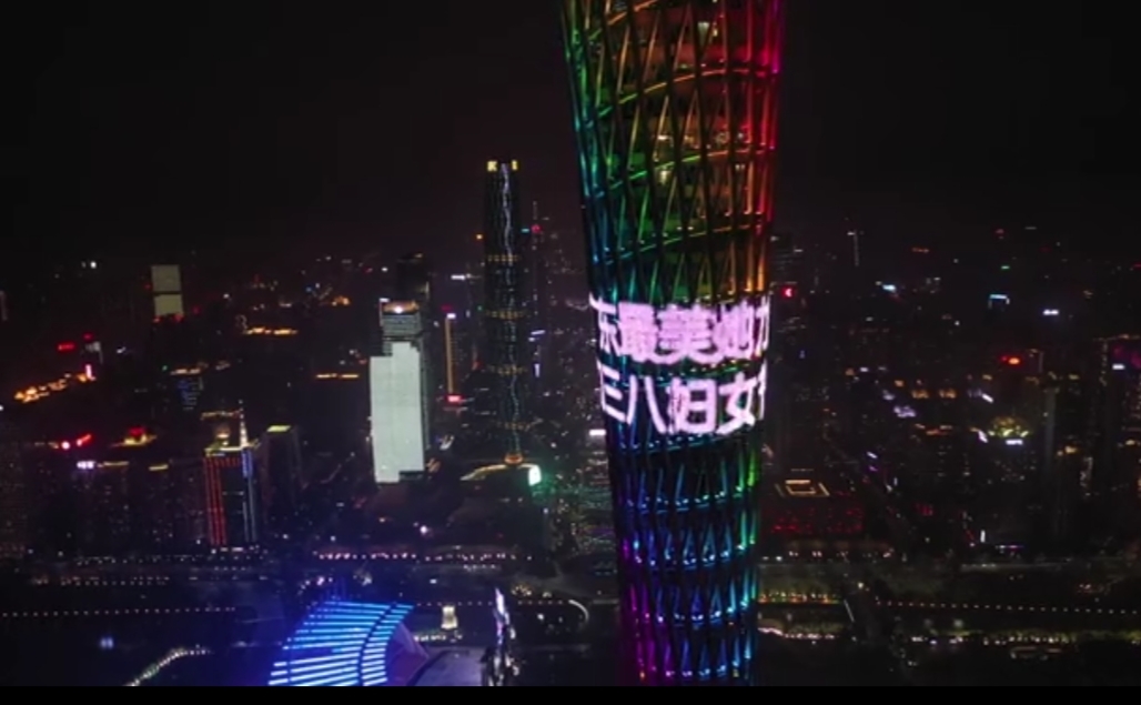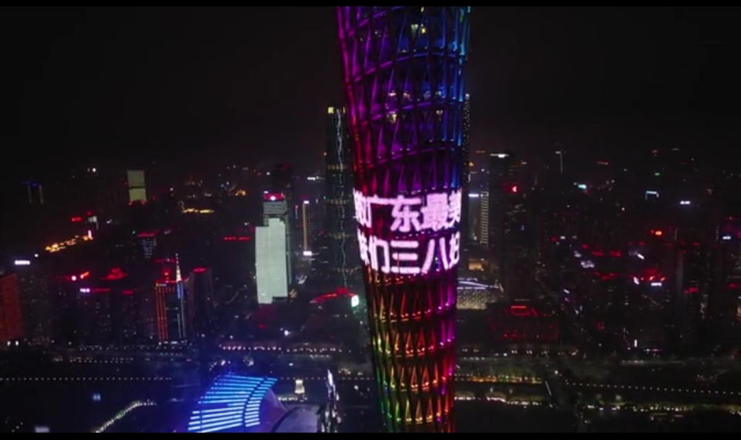 为做好疫情防控宣传和纪念“三八”国际妇女节110周年,广州塔作为城市地标性景点,积极利用塔身灯网亮起了“共同战‘疫’ 致敬我的同乡英雄”“致敬,广东最美她力量”“祝姐妹们三八妇女节快乐”和“致敬最美战‘疫’家庭”的宣传标语,用璀璨明亮的地标之光向奋战在抗疫一线的全体女医护人员致敬。“3月7日晚上和8日晚上,上述宣传标语在广州塔身滚动播出,目的是借‘三八’国际妇女节向奋战的女医护人员致敬。”广州塔相关负责人透露,8日到广州塔的女士将有礼品,但是门票不像往年有打折的优惠,原因是他们不鼓励市民扎堆前往广州塔。