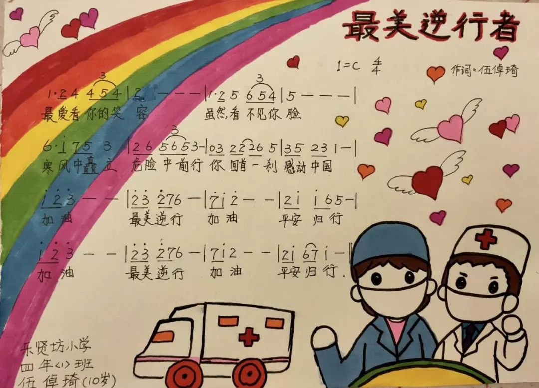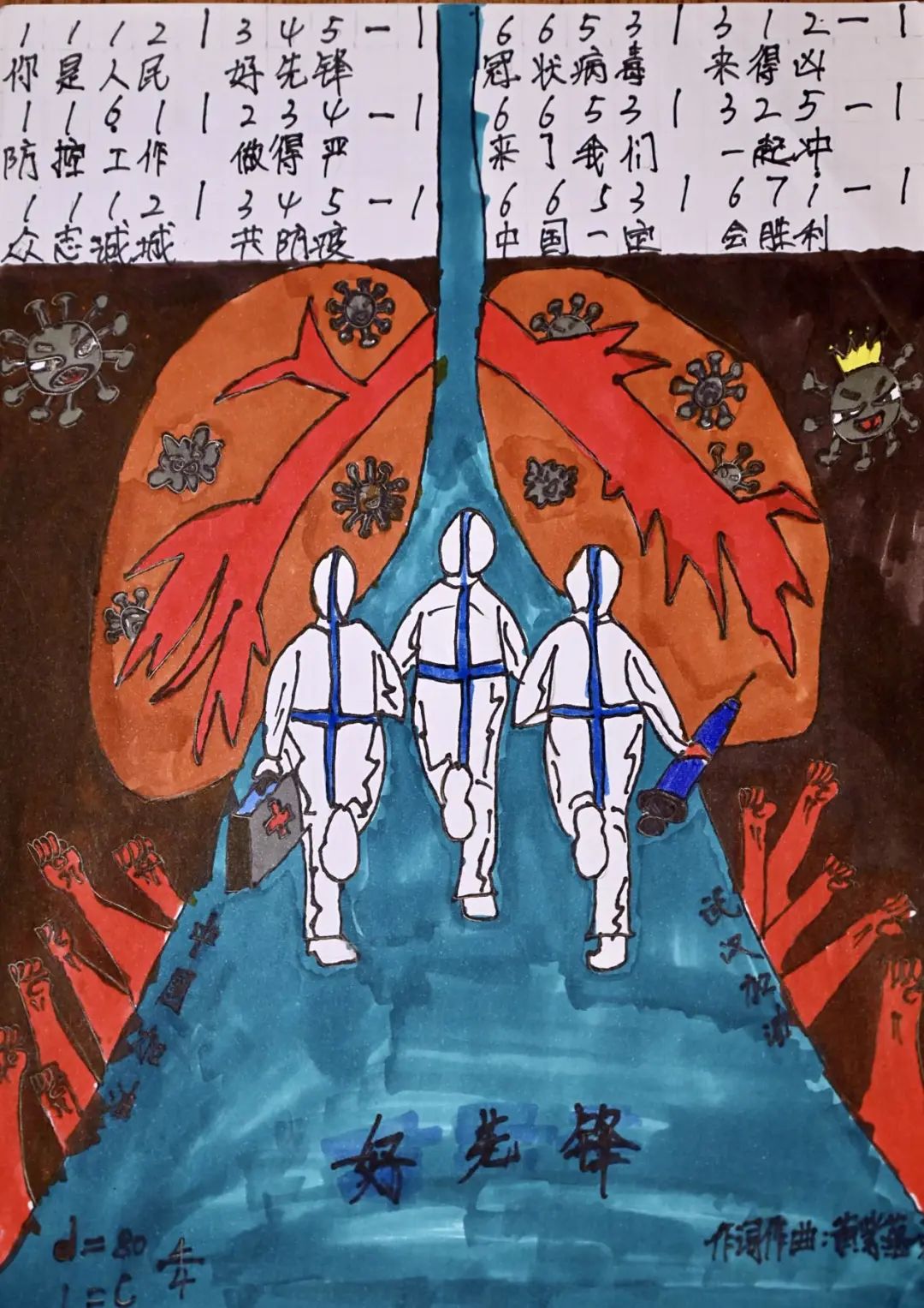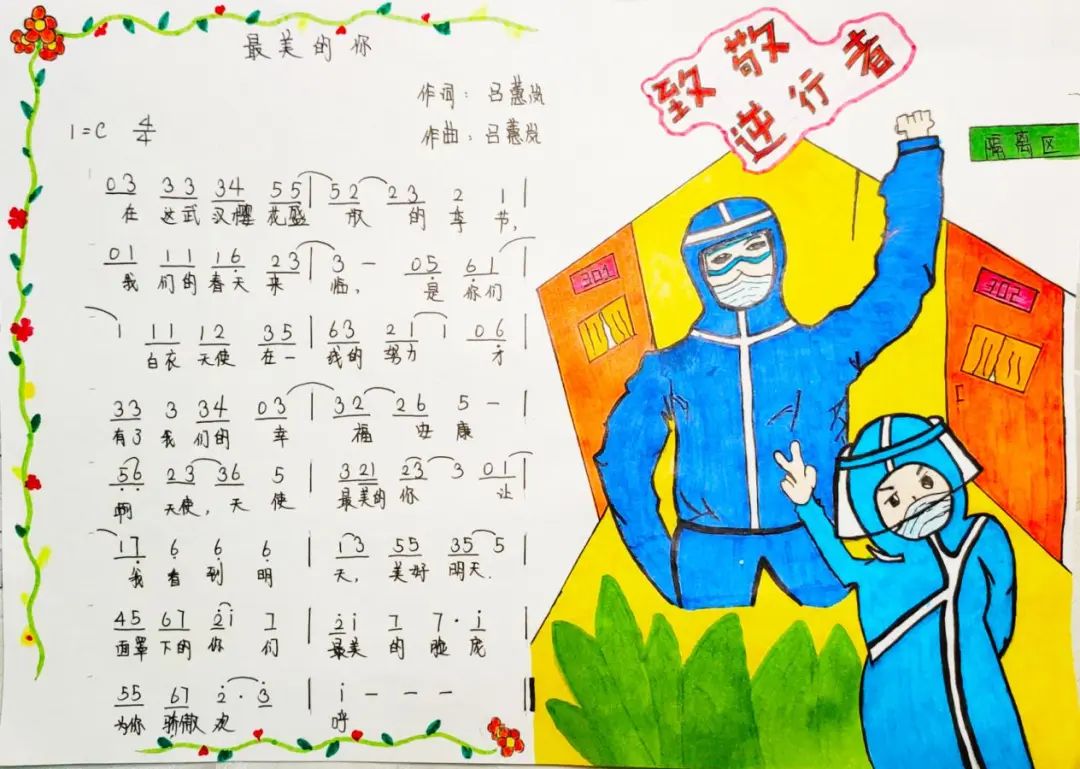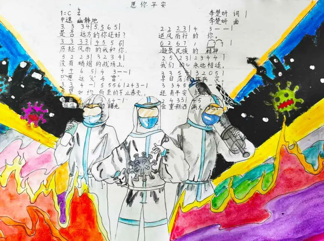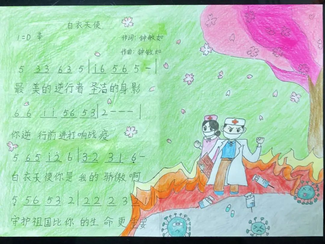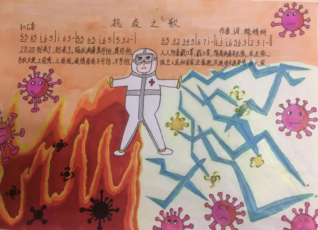 由于疫情的影响,广州中小学延迟开学。小e从荔湾区乐贤坊小学获悉,从2月下旬至今,学校孩子们在艺术老师的带领下,通过“童心抗疫”歌配画网络课堂,创编"抗疫歌",绘制"战疫图",把疫情防控的生活经验,转化到具体的艺术创作中,致敬奋战在抗疫一线的无名英雄们。