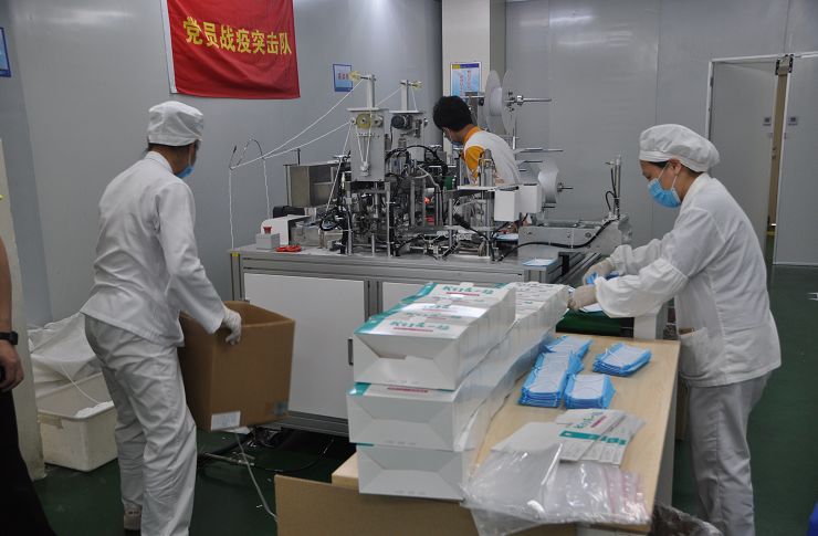 2月下旬,第一批2条医用口罩生产线投入生产,同时进一步提高医用手套量产,为坚决打赢疫情阻击战提供坚实的物资保障。双一公司医用口罩高速生产线于近日安装调试成功,每分钟可以生产医用口罩800-1000片,预计产能每天可达到100万片,设备生产能力达到世界先进水平。