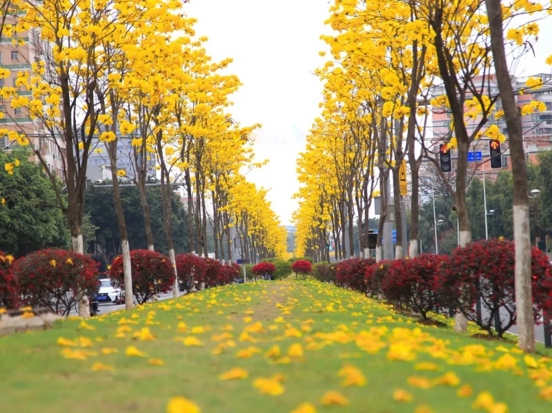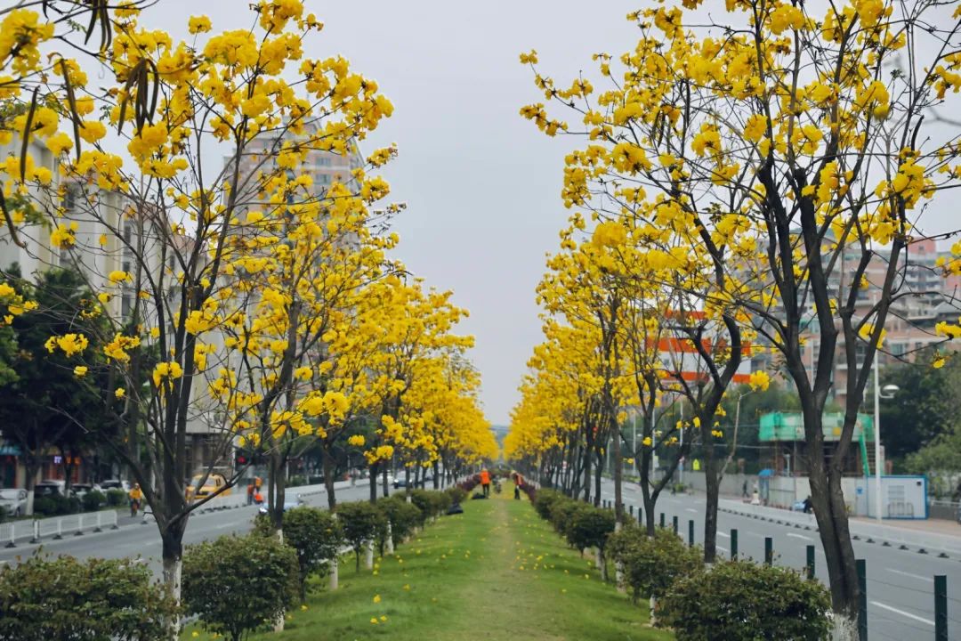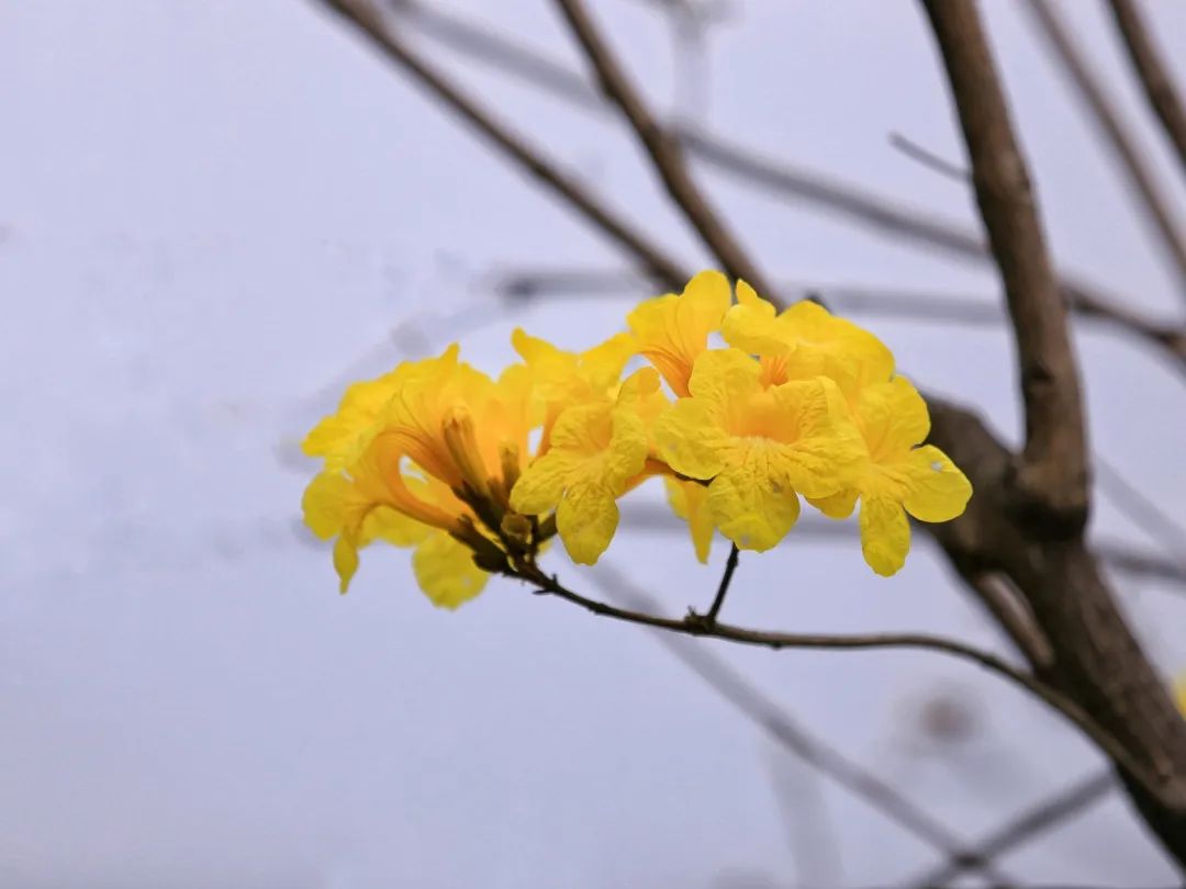 黄花风铃木的花语是感谢,寓意对人、事充满了感激、感谢的心情,
