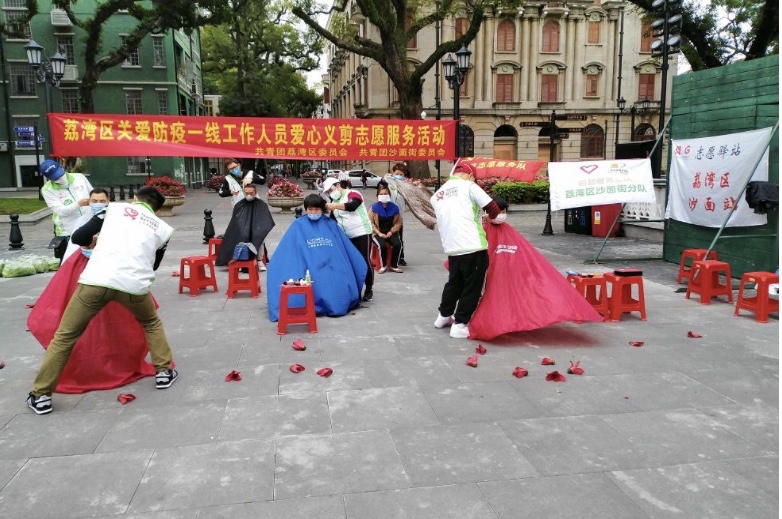 全媒体记者从荔湾区获悉,荔湾共青团招募专业青年理发师组建的荔湾青年战疫志愿服务队——Tony小分队,继上周深入东漖街西塱经济联社开展义剪后,继续深入基层一线,结合“学雷锋”活动月,为奋战在“防疫”一线的基层工作人员、社区长者、街坊群众义务理发。近日,小分队先后走进沙面街、东沙街、西村街开展服务。