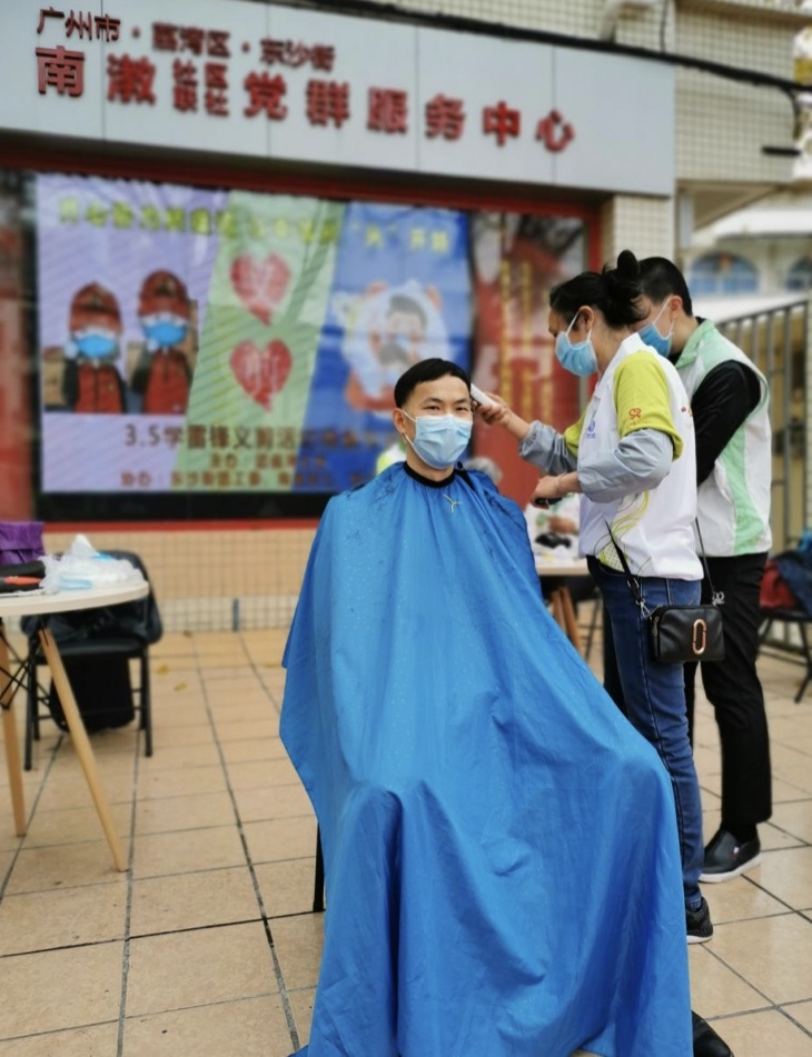 东沙街南漖经济联社第一书记梁海峰同志,疫情防控工作开展至今,他一直奋战在一线。此次义剪活动中,他也充分发挥带“头”作用,带头理发。“齐心协力战疫情,让幸福从头开始”义剪行动,也为社区、联社打通服务群众的“最后一公里”,在防疫关键期,为居民群众提供更贴心便利的日常生活志愿服务,解决大家的实际困难。