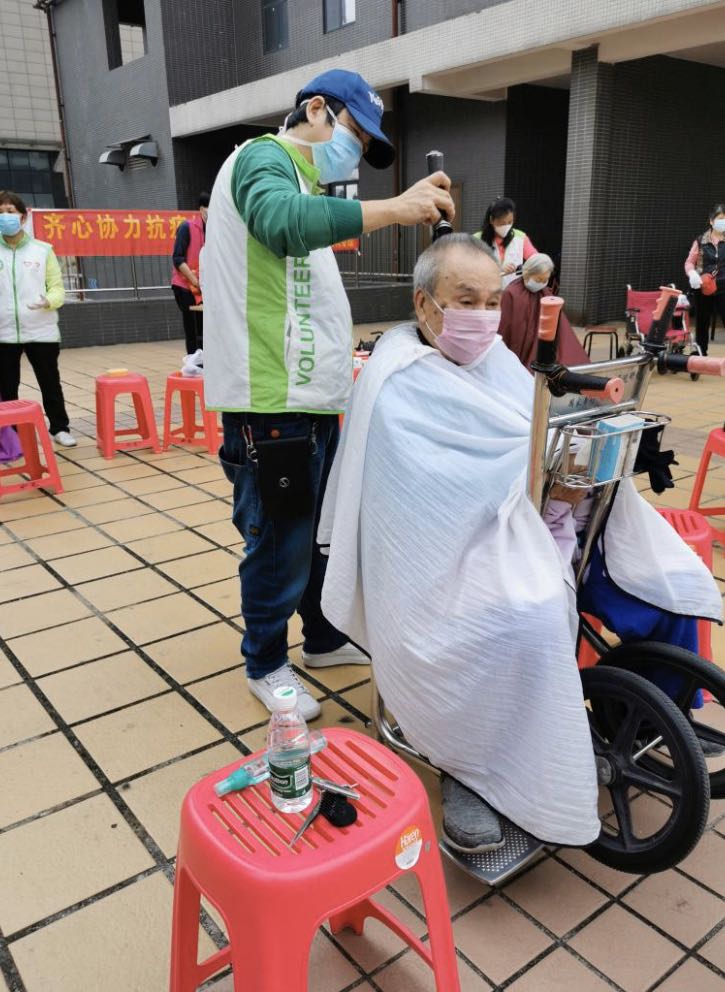 前来参与的街坊表示,因为疫情,从过年到现在近两个月没有理发。“志愿义剪理发师手艺挺好的,感谢他们。”