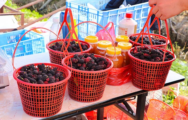 在镇农办的指导下,黄大哥主动改变思路,通过深加工等方式完善桑果产品链。除了接待周边群众采摘,他把成熟的桑葚加工制作成各种容易保存、方便运输的桑果制品,如桑果酱、桑葚干、桑葚酒等,面向养生保健市场进行销售。
